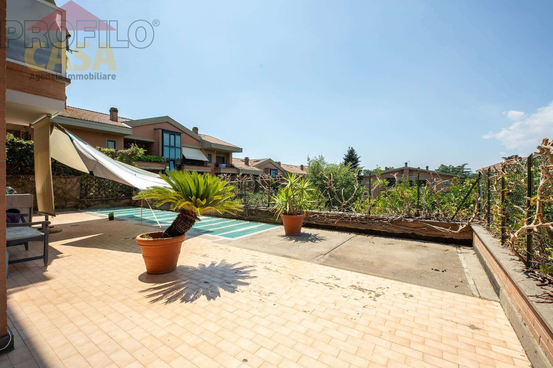 All'interno del prestigioso comprensorio Olgiata, con servizio di portineria h24, piscina, due campi da gol con annesso elegante ristorante, Country Tennis Club, Olgiata Park Circolo Ippico che vanta due grandi maneggi coperti in muratura, abbiamo il piacere di proporre la vendita di un appartamento con terrazzo e ampio portico oltre un bellissimo giardino che circonda tutta la propriet con accesso indipendente.