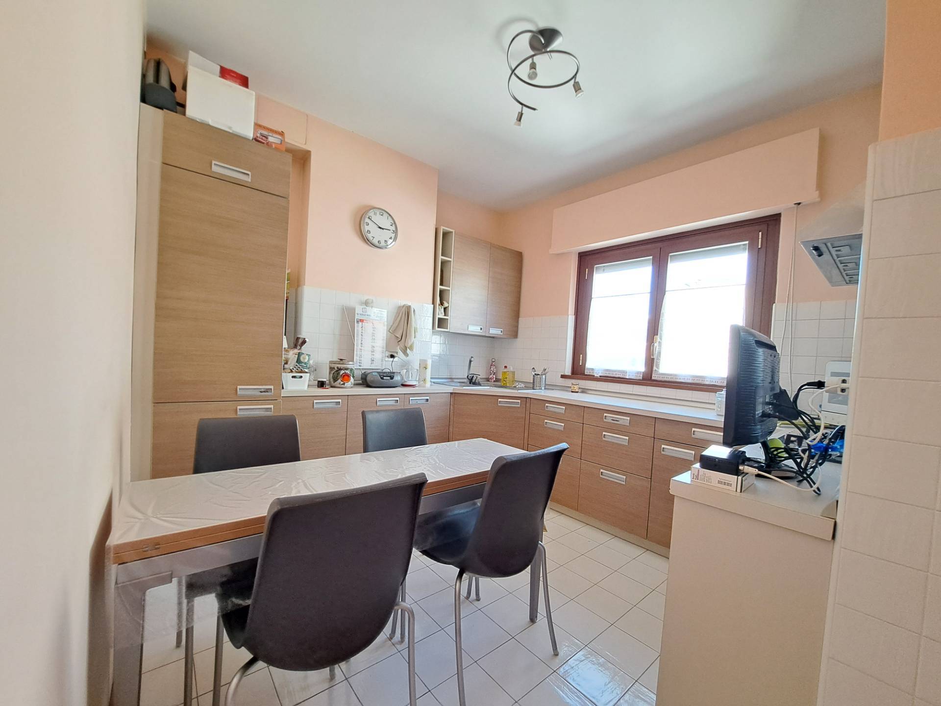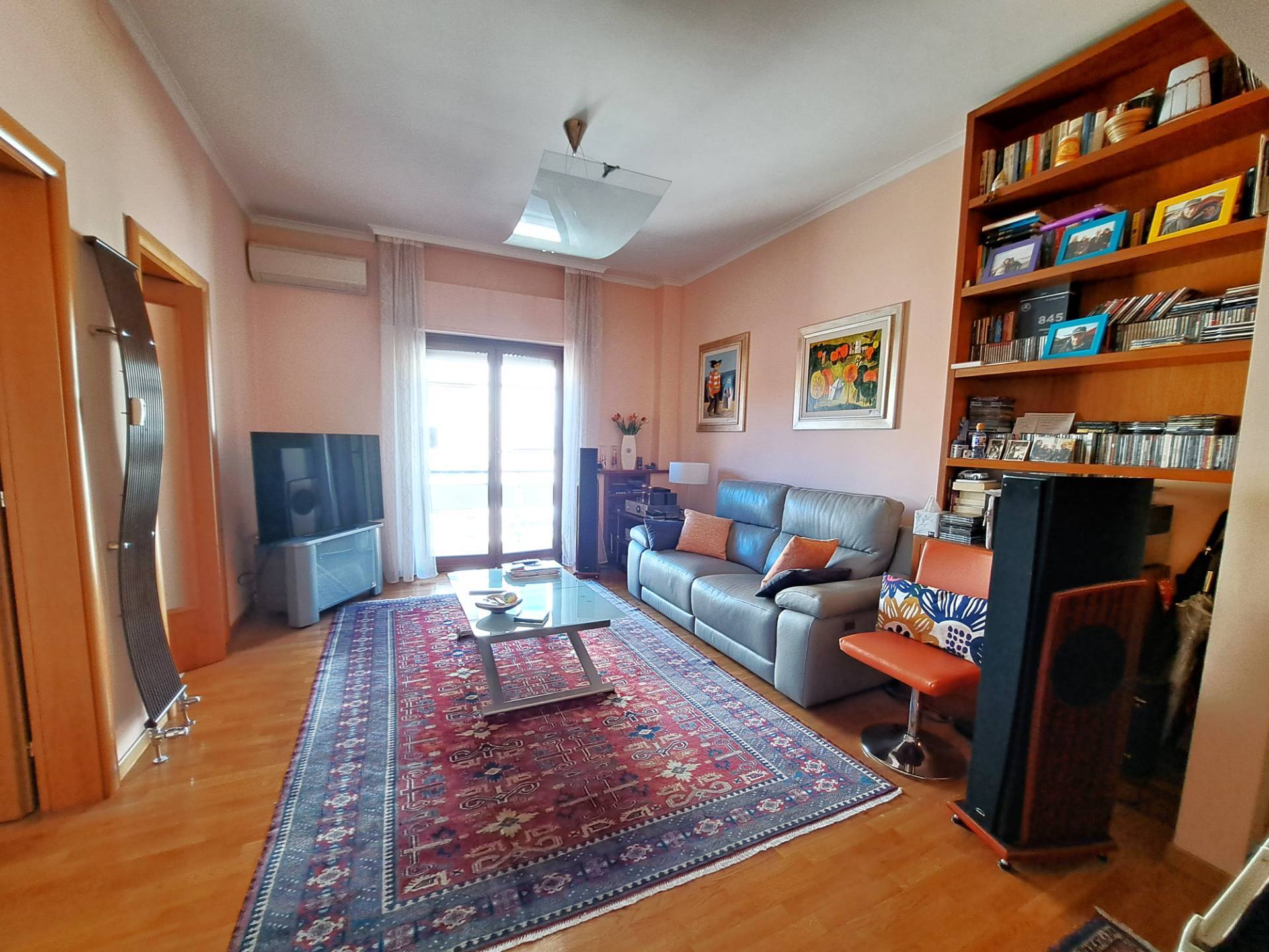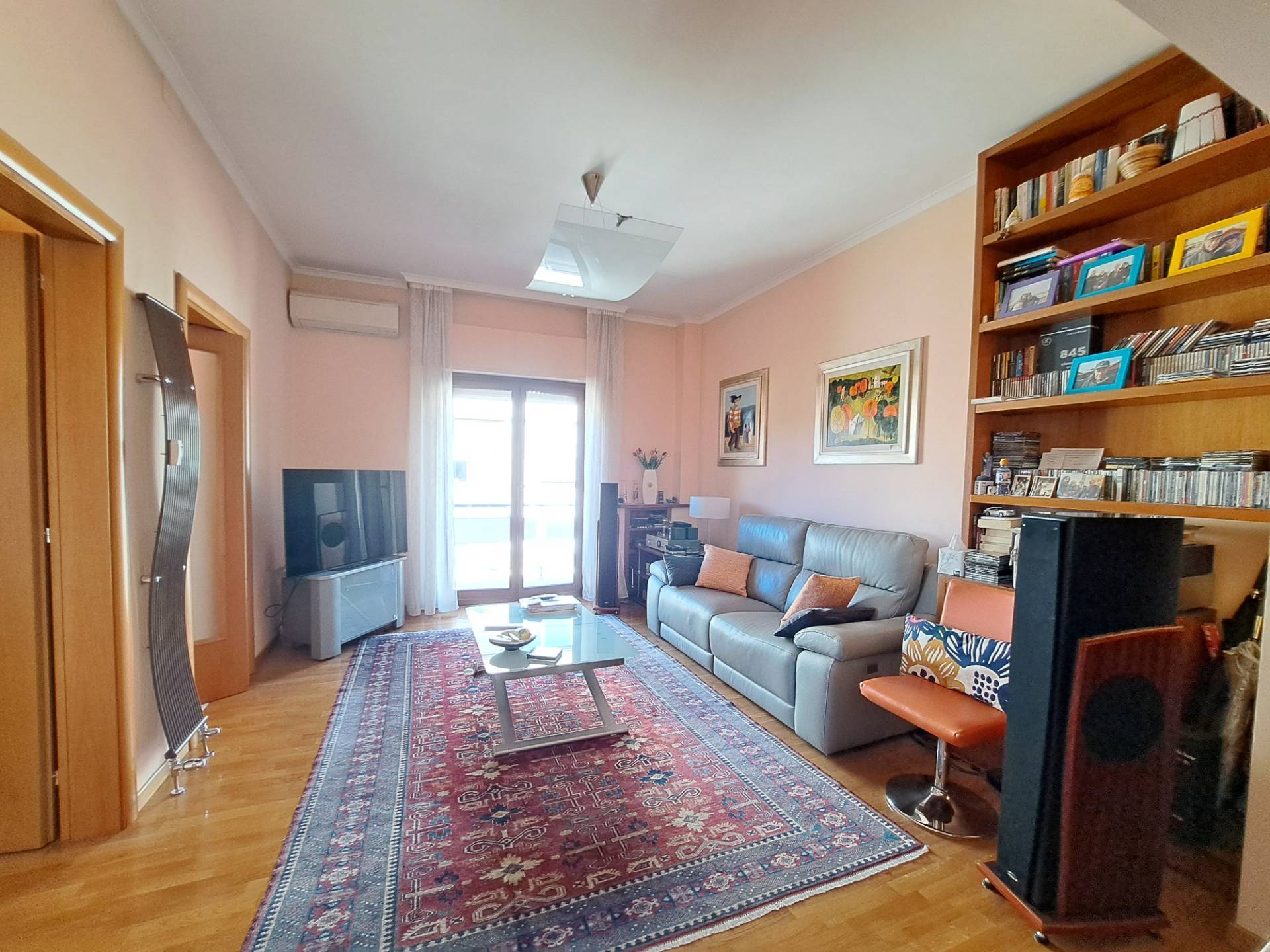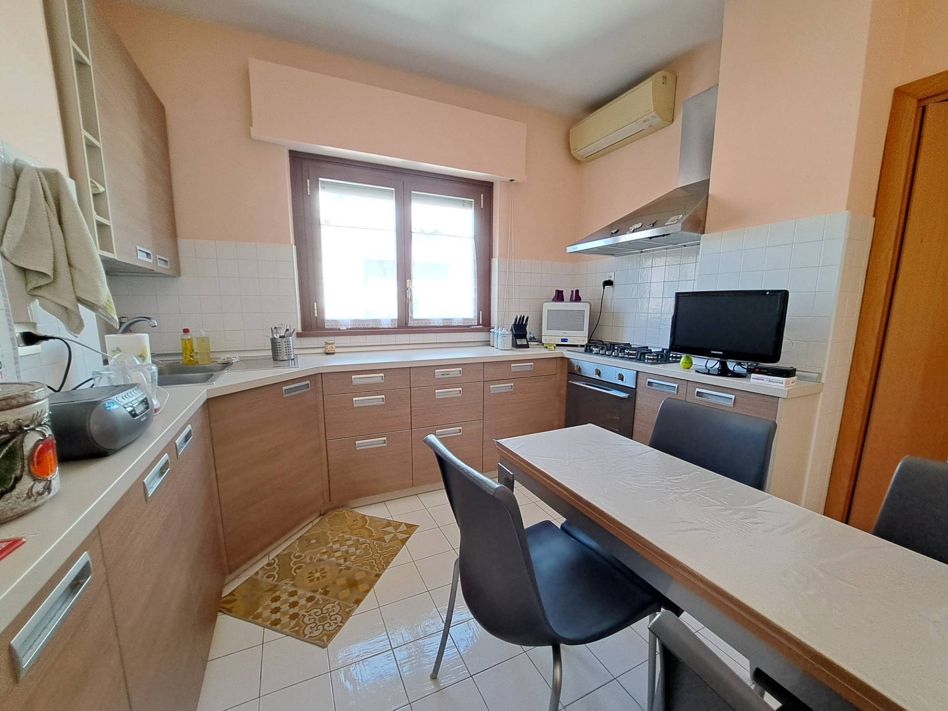 Aprendo la porta blindata accediamo alla casa e veniamo subito accolti da uno spazioso ingresso, servito da armadio a muro , su cui si affaccia il salone di 25 mq che ha l'uscita verso un comodo balcone con annessa tenda da sole. Nella stanza adiacente, a completamento della zona giorno, abbiamo la cucina abitabile molto spaziosa dove possibile mangiare comodamente.