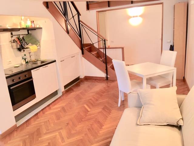 Gli interni, luminosi e ariosi, sono disposti su due livelli: ingresso, soggiorno con cucina a vista dotata di piastre a induzione e zona living, al piano superiore ampia zona letto servita da spaziosi ripostigli e armadi a muro, un bagno con box doccia e lavatrice.