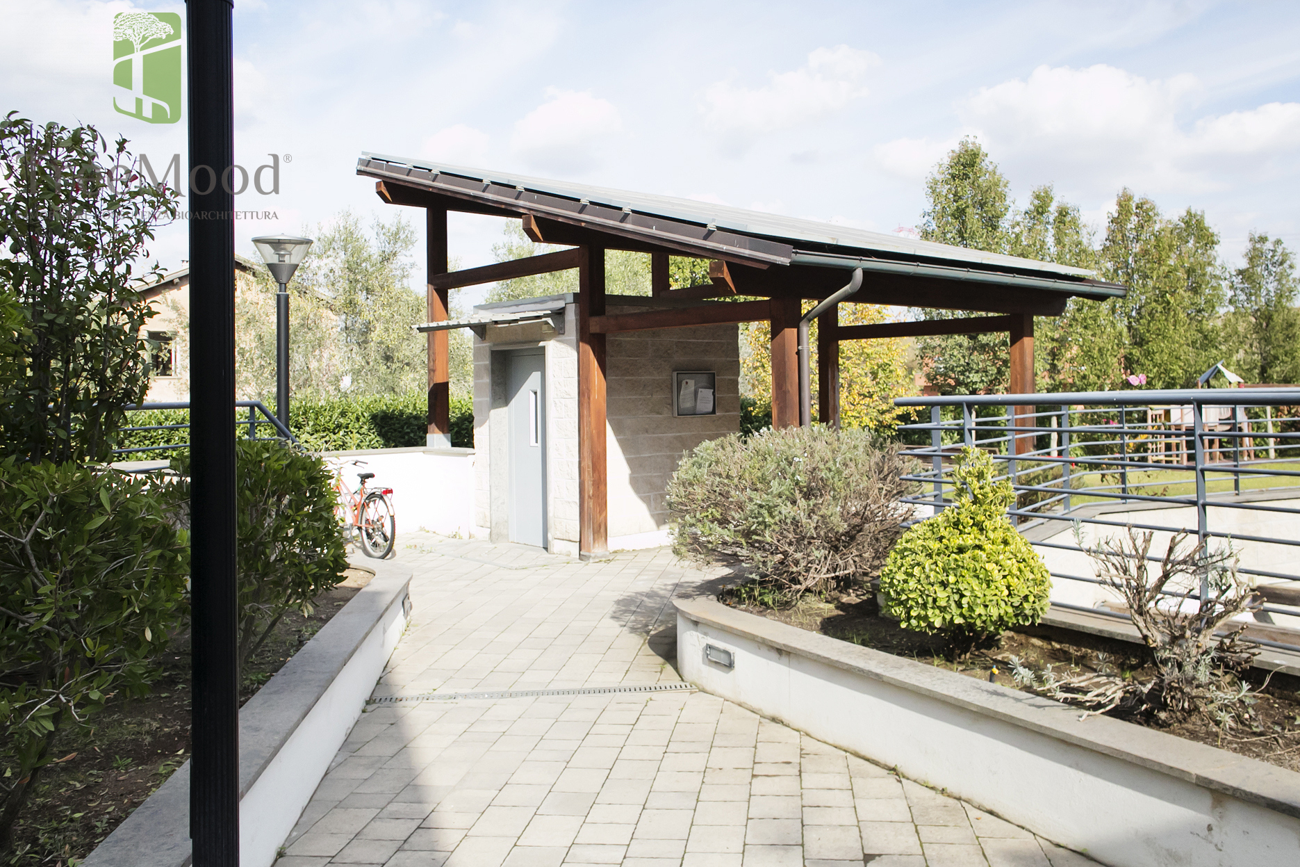 I pavimenti sono in parquet, la porta di accesso blindata; inoltre presente l'impianto di irrigazione, il barbecue con canna fumaria, la predisposizione per l'impianto di condizionamento e di allarme, pannelli solari termici per acqua calda, pannelli solari fotovoltaici per il 15% del fabbisogno energetico/elettrico condominiale del complesso.