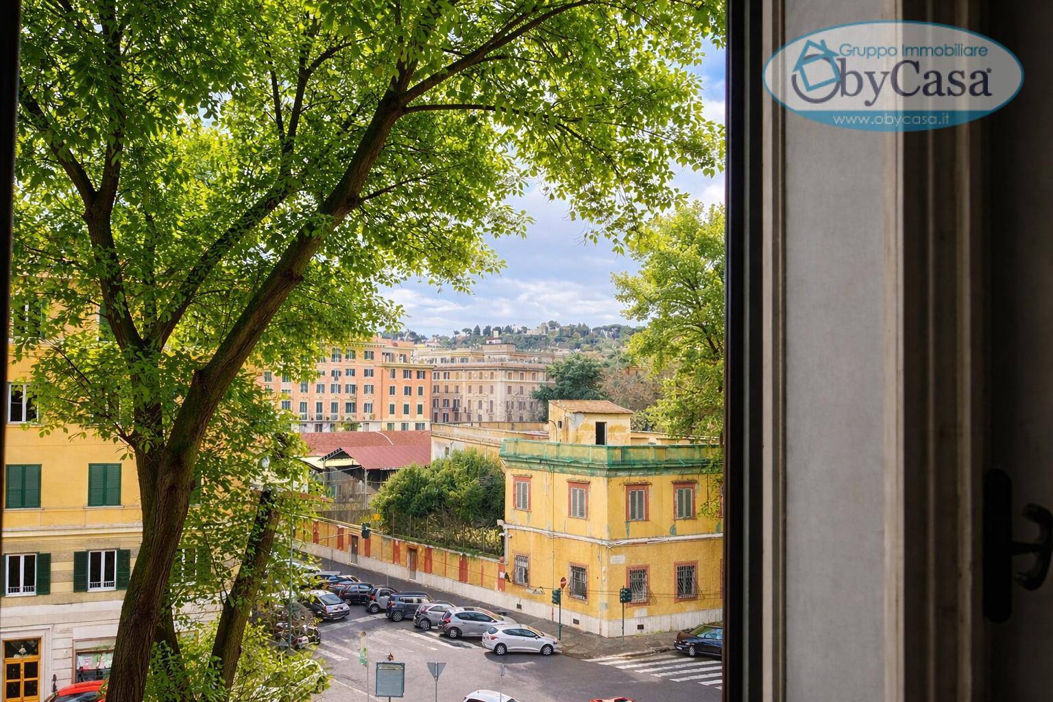 Lappartamento, situato al terzo piano, gode di un affaccio aperto e luminoso su Viale Angelico, che dona prestigio e grande respiro agli ambienti interni.