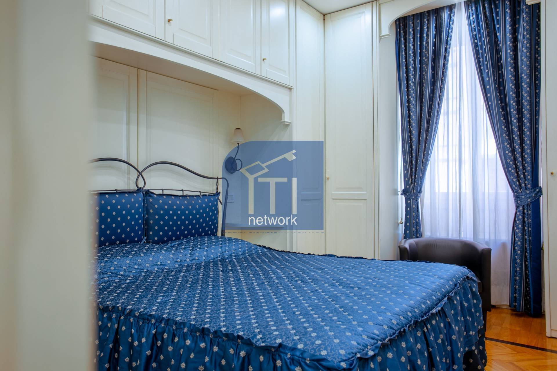 Lingresso si apre su un ampio disimpegno che conduce a un salone doppio con affaccio su Via Acaia, uno spazio luminoso e accogliente, facilmente divisibile per creare due ambienti distinti, come un soggiorno e una sala da pranzo, oppure una camera aggiuntiva.