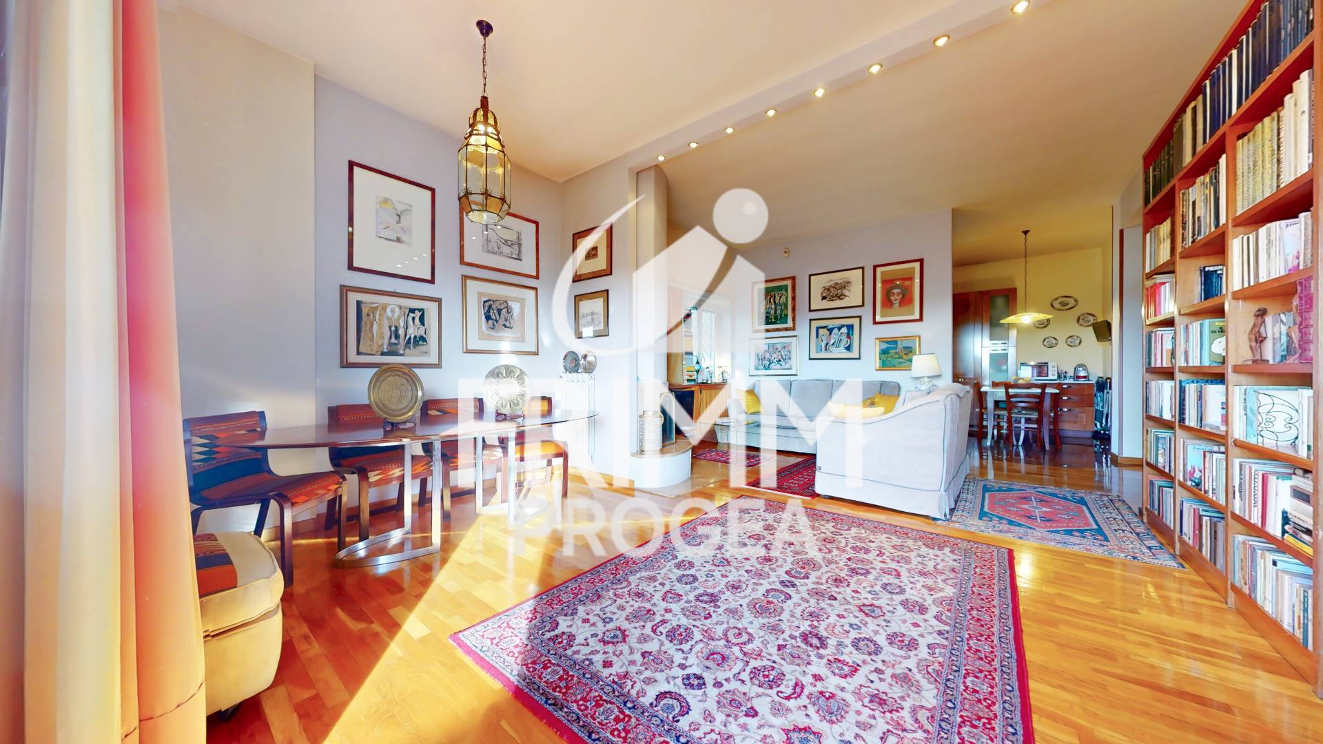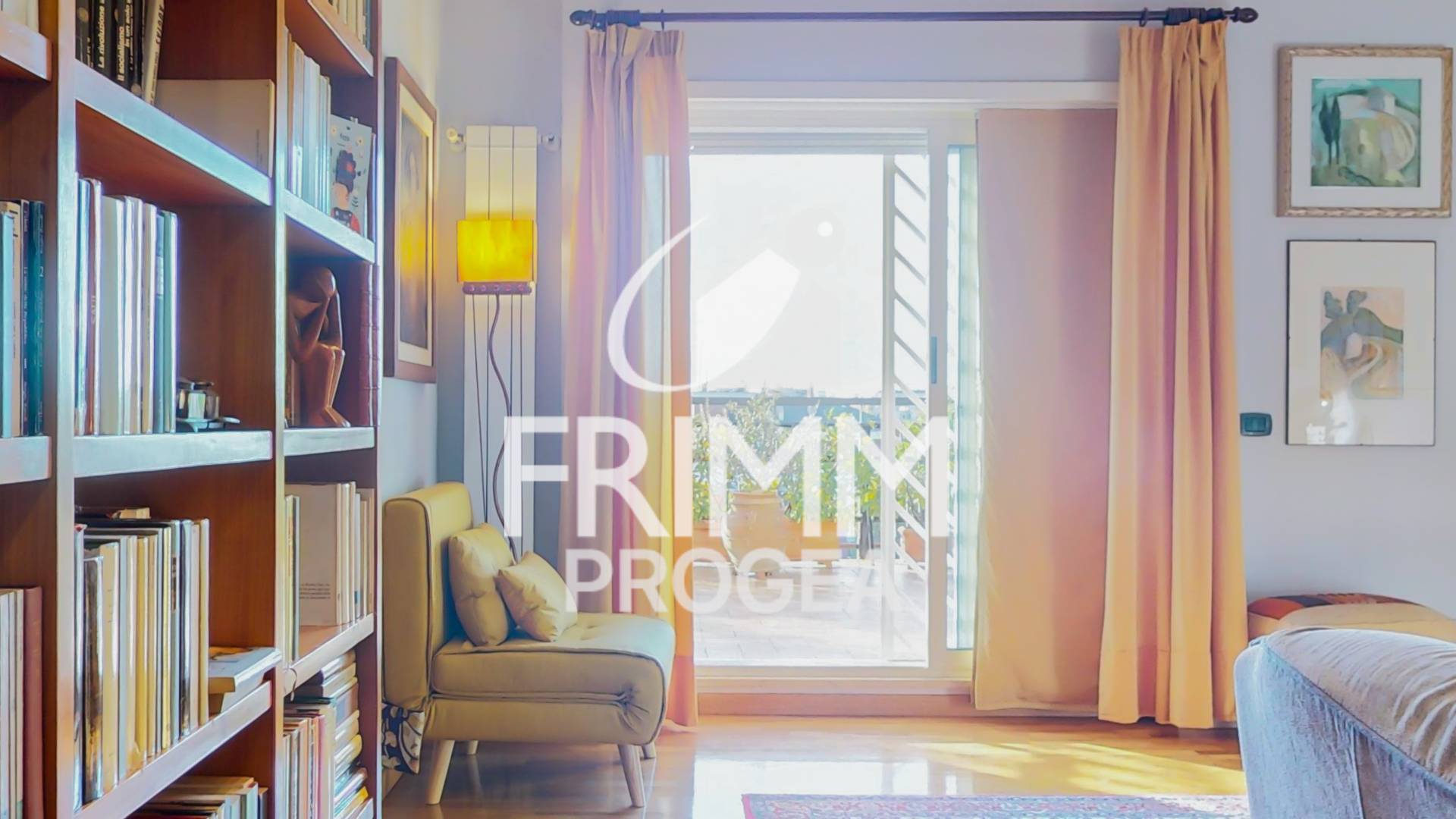 Lappartamento, luminoso e rifinito con materiali di pregio, vanta un magnifico terrazzo ad L, con esposizione libera e soleggiata verso Ovest, accessibile dal salone, dalla camera e dalla cucina.