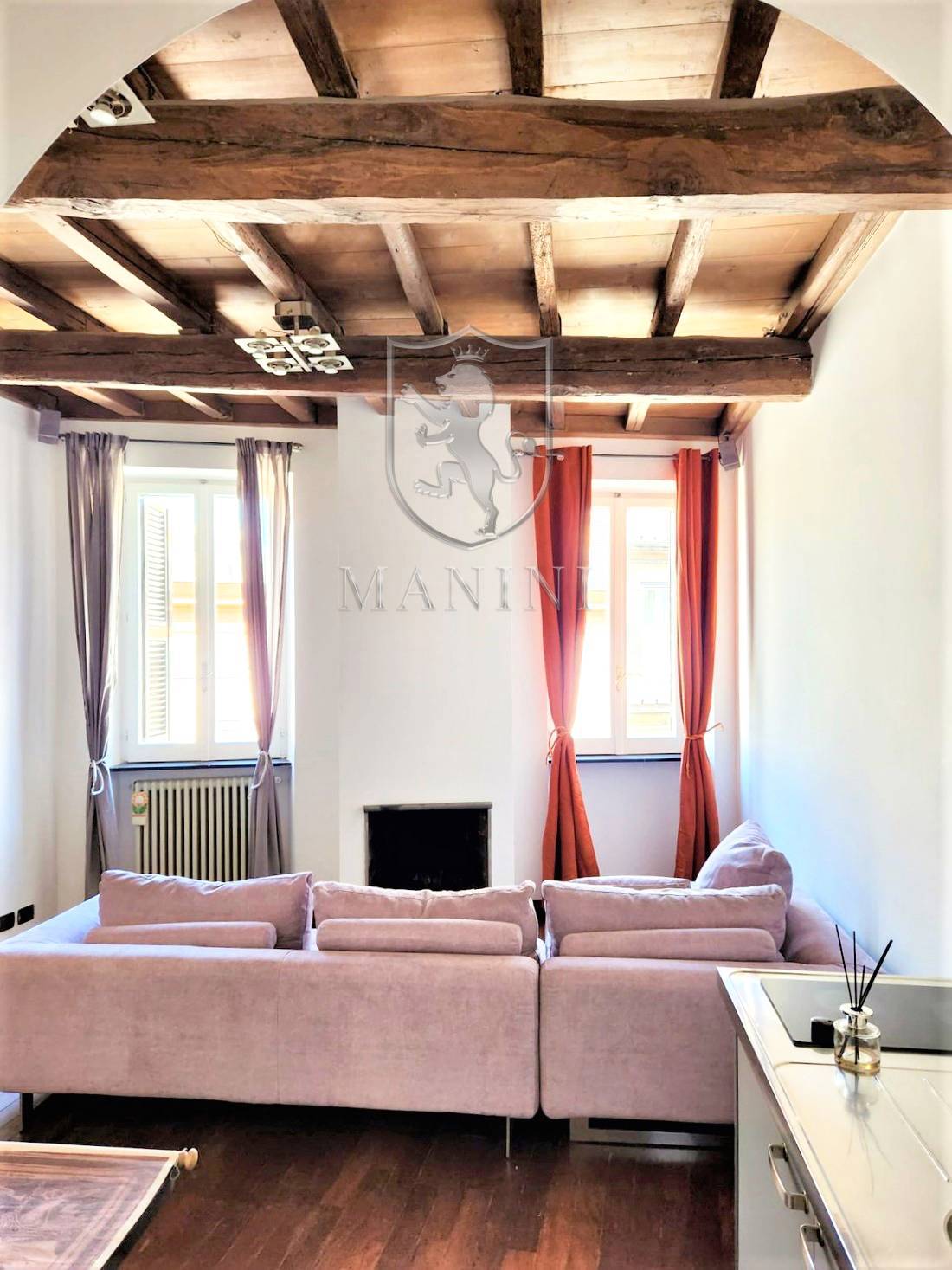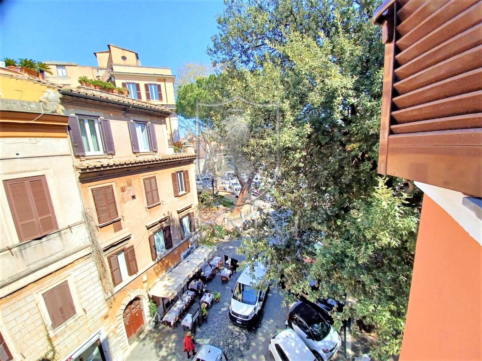 Questo appartamento con vista su Ponte Sisto al centro di Trastevere, nelle immediate vicinanze di Piazza Trilussa e Via Giulia.