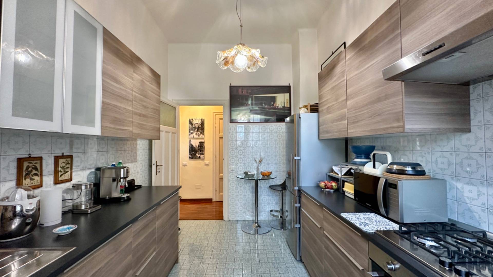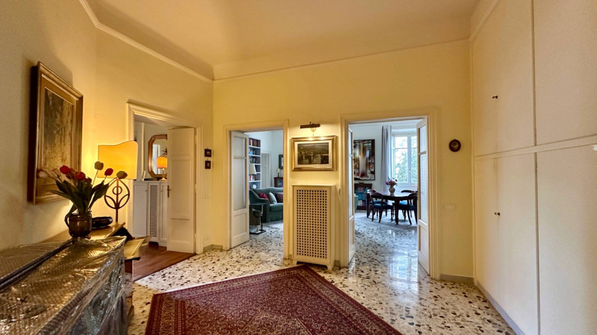 Lappartamento caratterizzato da soffitti alti oltre tre metri e da una bella luminosit grazie alla sua esposizione angolare con affacci esterni su due lati, si distingue per latmosfera elegante e la distribuzione degli ampi spazi.