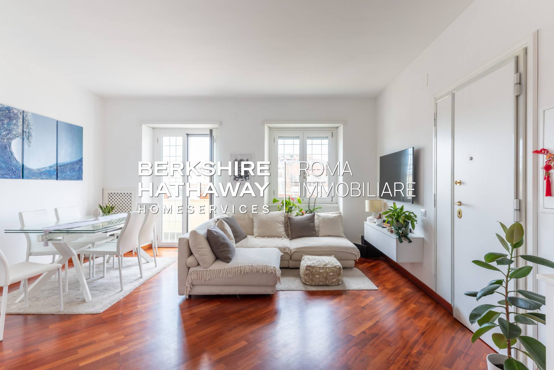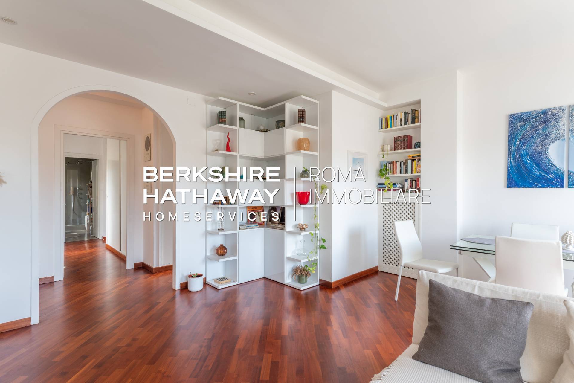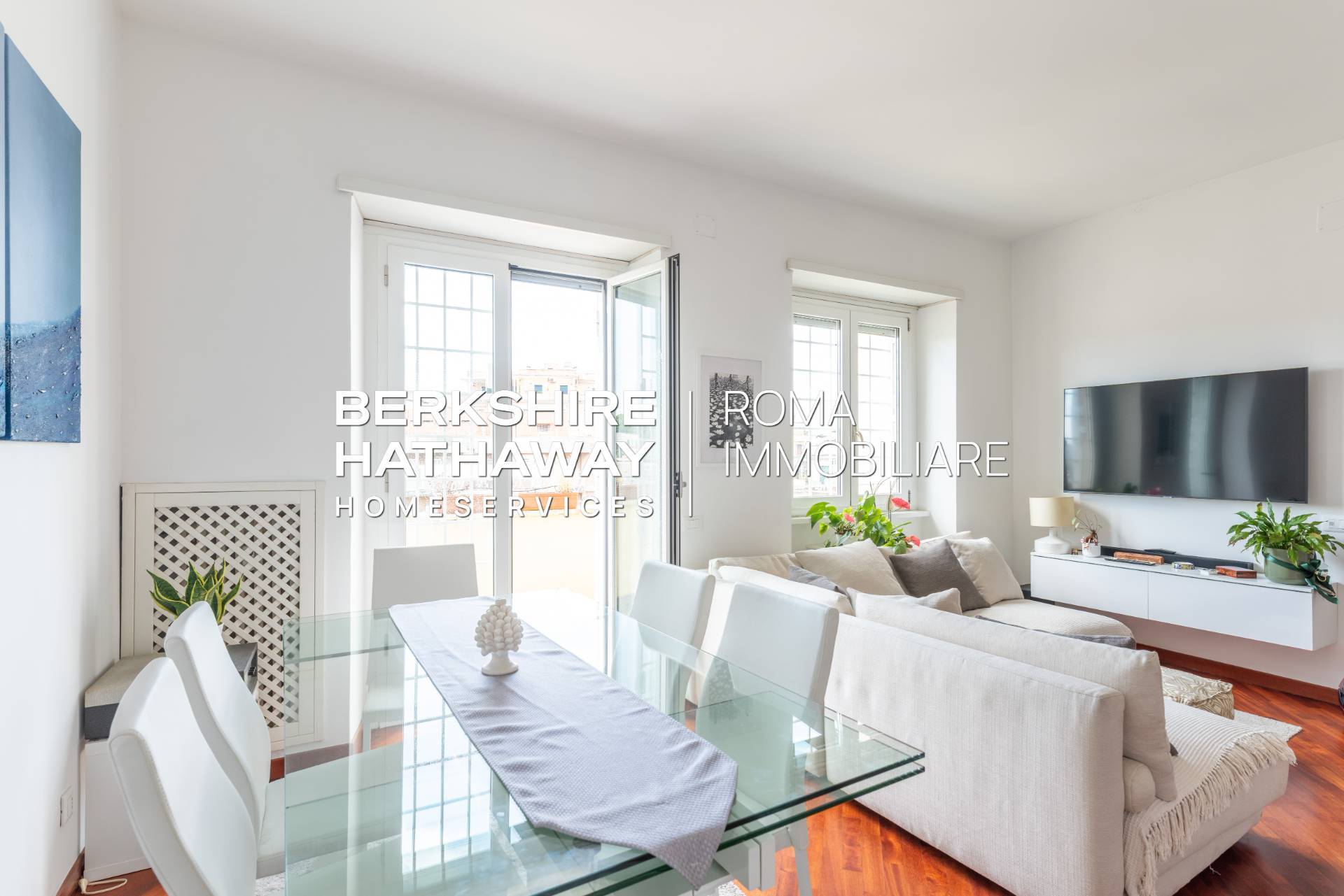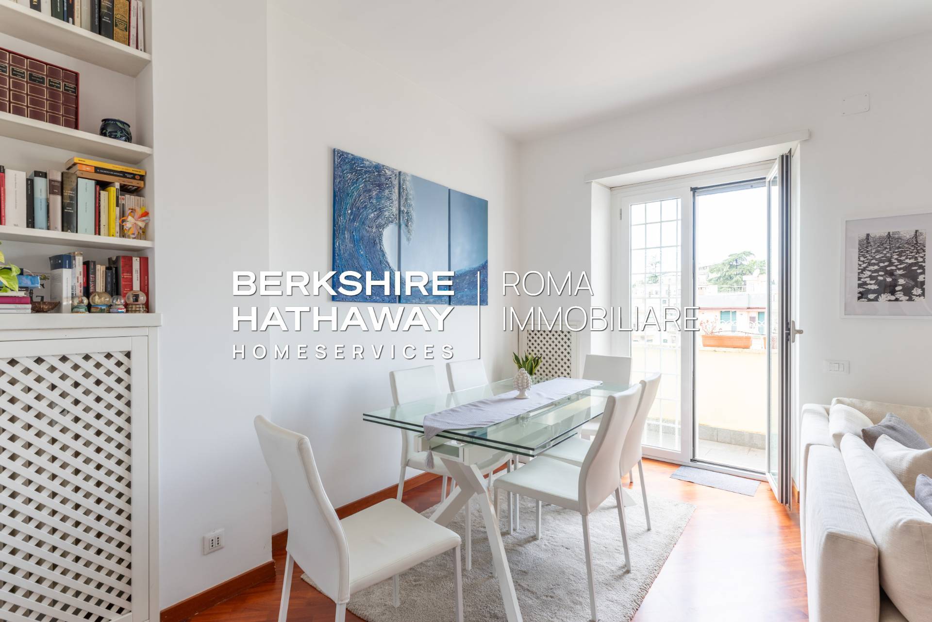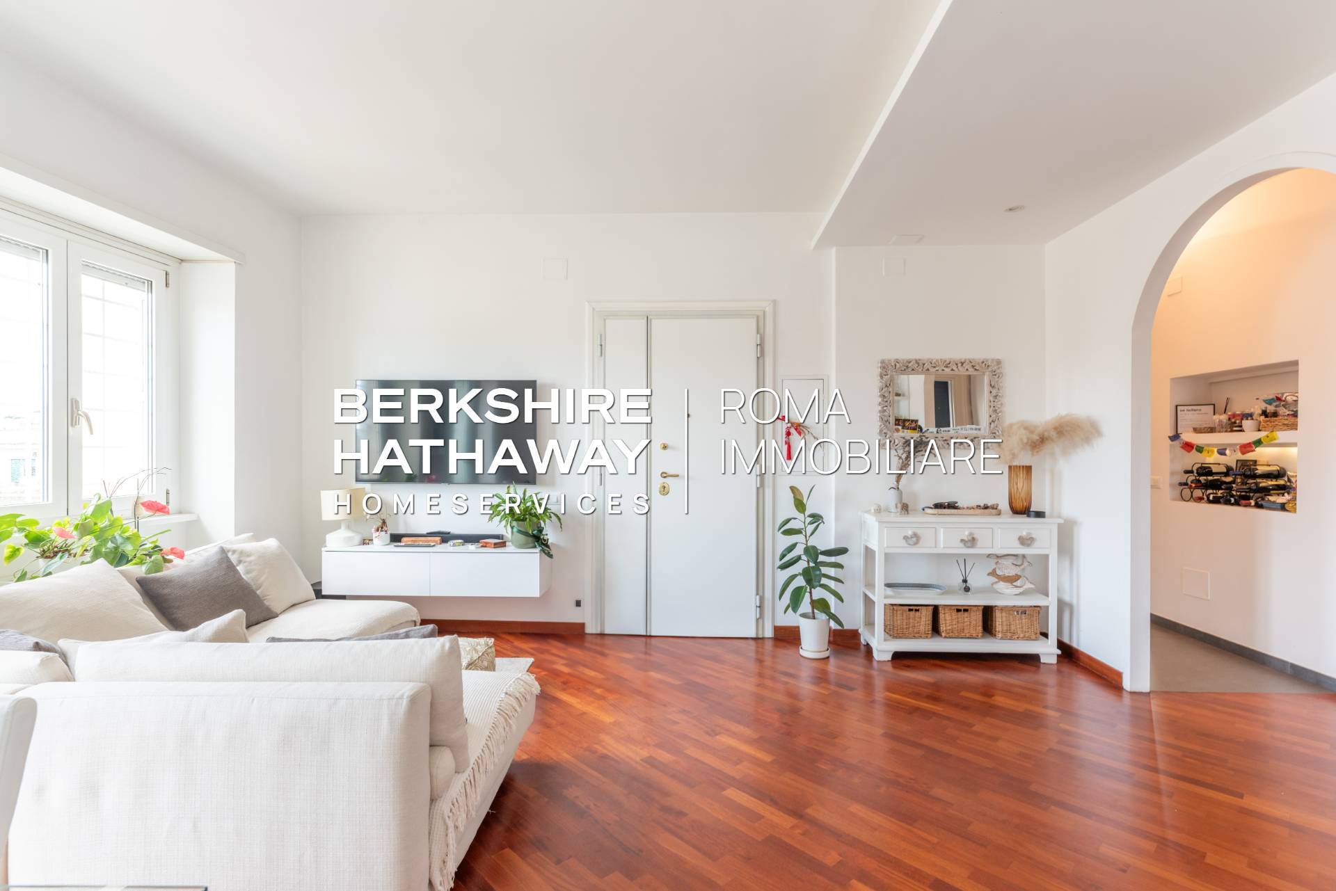 RIF91V25 - IN TRATTATIVA La Berkshire Hathaway Homerservices | Roma Immobiliare propone, in una delle zone pi tranquille e riservate del quartiere e pi precisamente in Via Collato Sabino, la vendita di un elegante attico trilocale di 100 mq interni con 40 mq di terrazzi, completamente ristrutturato con finiture di pregio.