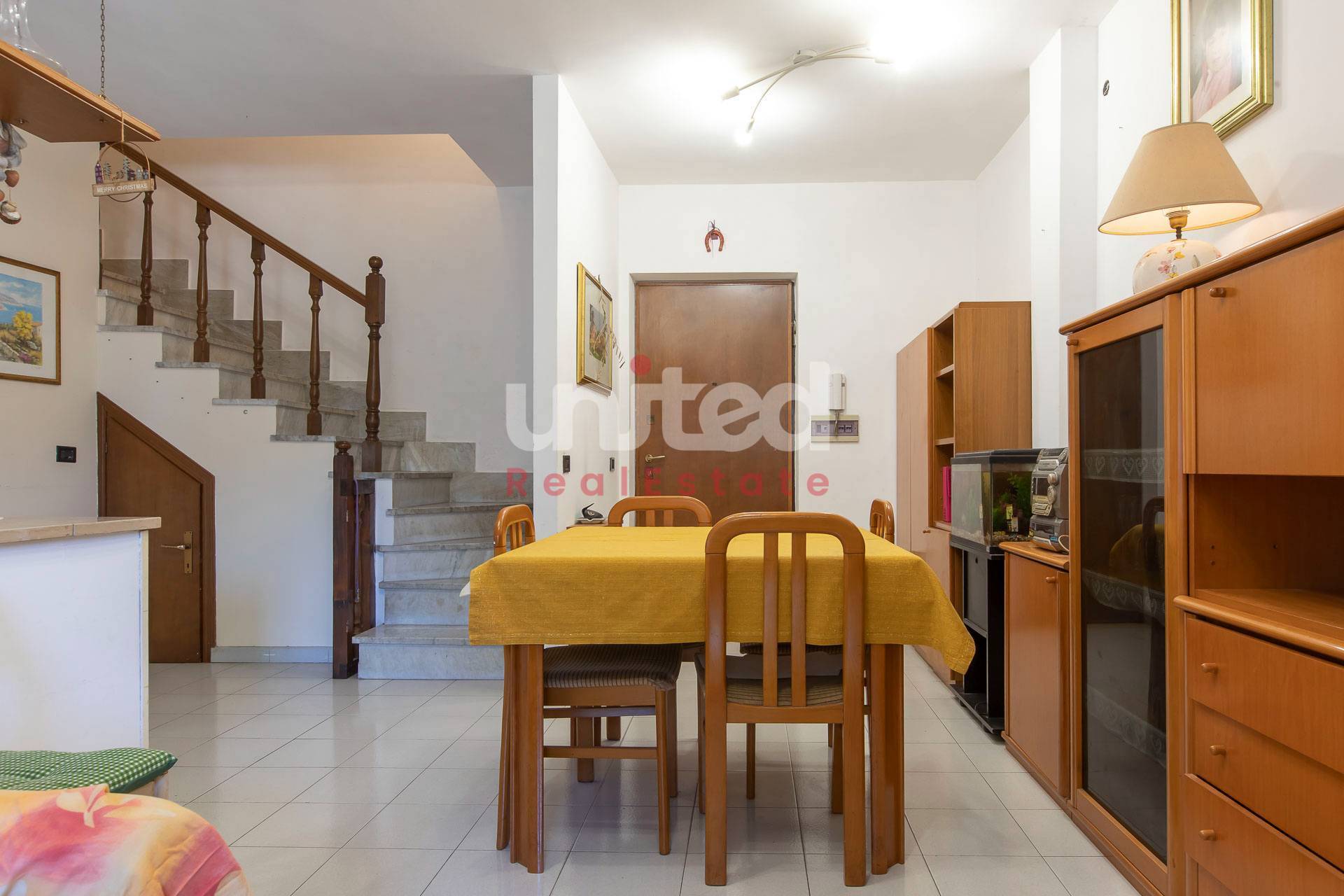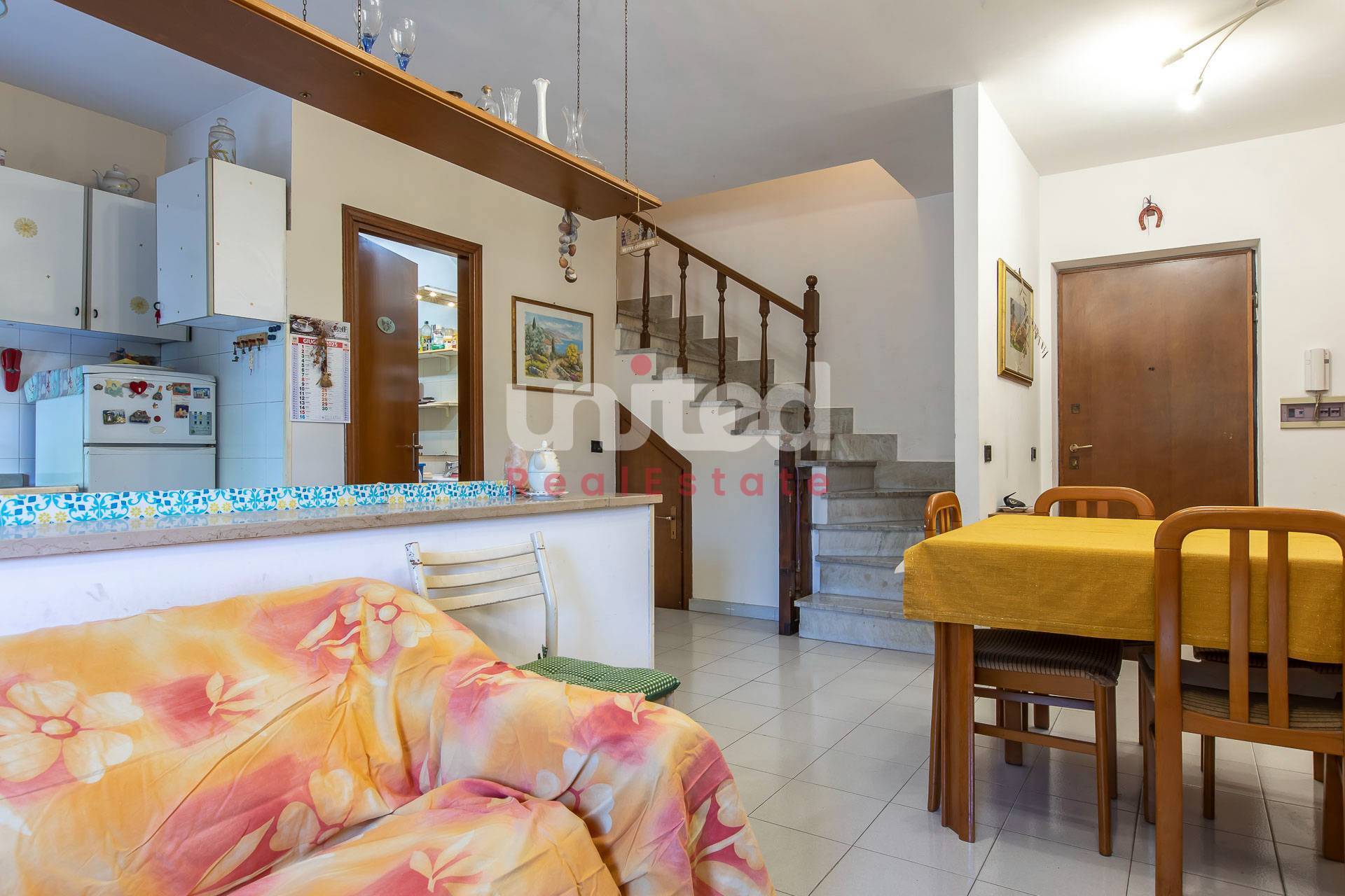 L'immobile, posto al primo e ultimo piano, sviluppa una superficie di 90 mq su due livelli ed composto da un ampio ingresso che apre sul salone con cucina a vista, un bagno di servizio con lavanderia e un comodo ripostiglio sottoscala.