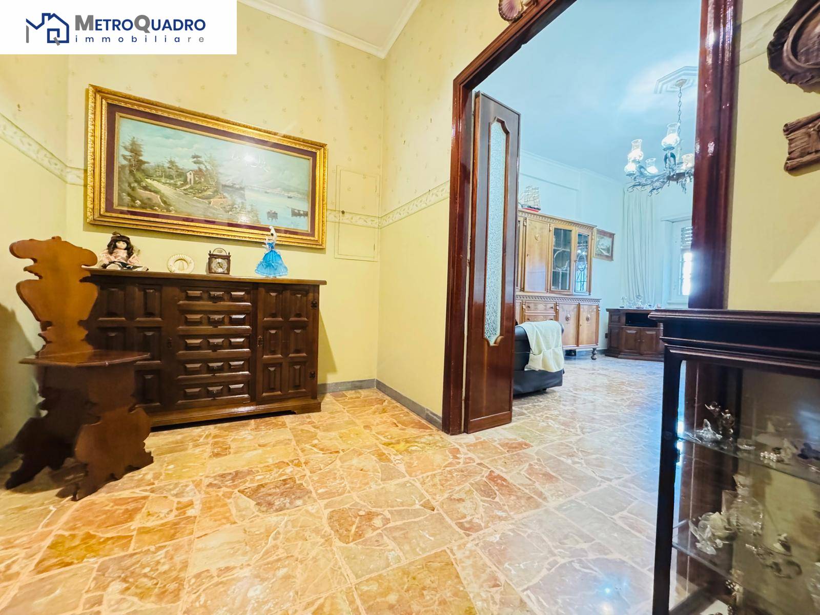 L'Agenzia Immobiliare " Metroquadro " propone in vendita un appartamento di ca. 96 mq posto al primo piano con ascensore , perfetta per chi cerca ampi spazi e la libert di personalizzare completamente la propria casa. L'appartamento, attualmente composto da ampio ingresso, soggiorno, cucina abitabile, due camere da letto e un bagno, necessita di interventi di ristrutturazione, offrendo la possibilit di ridistribuire gli spazi interni secondo i propri gusti.