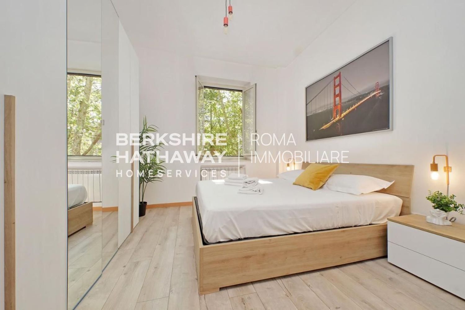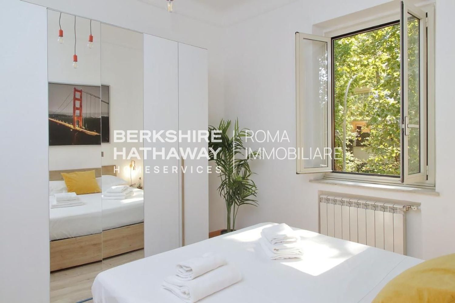 Bright master bedroom and bathroom with views over Viale Parioli.