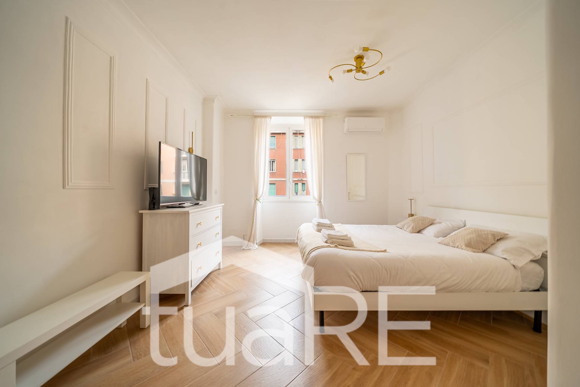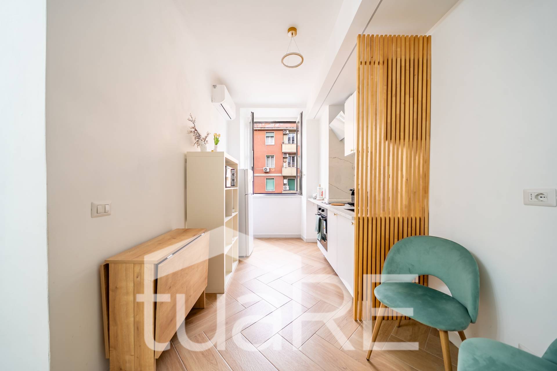 TUA RE Furio Camillo ad.(Via Santa Maria Ausiliatrice) SPLENDIDO 5° PIANO con MERAVIGLIOSI AFFACCI APERTI e luminosi, FINEMENTE RISTRUTTURATO con MATERIALI DI PREGIO, venduto COMPLETAMENTE ARREDATO, in stabile signorile ristrutturato, ingresso, soggiorno con cucina a vista, ampia camera matrimoniale, servizio.