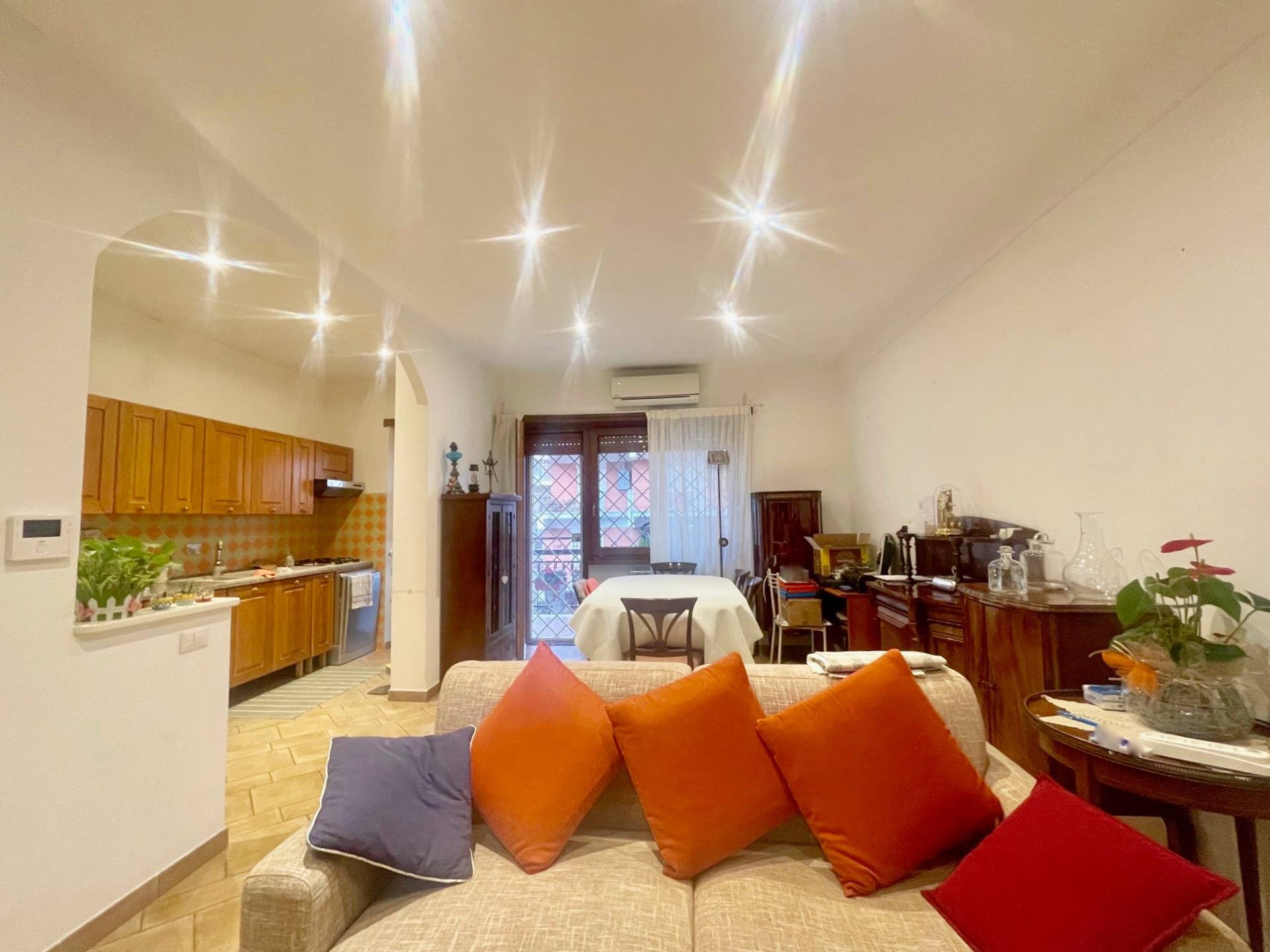 l'immobile, completamente ristrutturato con rifiniture di pregio, e' composto da un ampio salone, due camere da letto cucina abitabile, doppi servizi e ripostiglio.