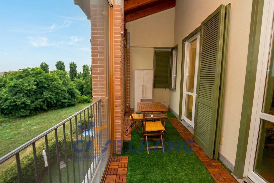 La zona giorno affaccia su un terrazzino loggiato di circa 12 mq, dotato di zanzariere perimetrali e tende da sole motorizzate, ideale per essere vissuto anche nei mesi pi caldi.