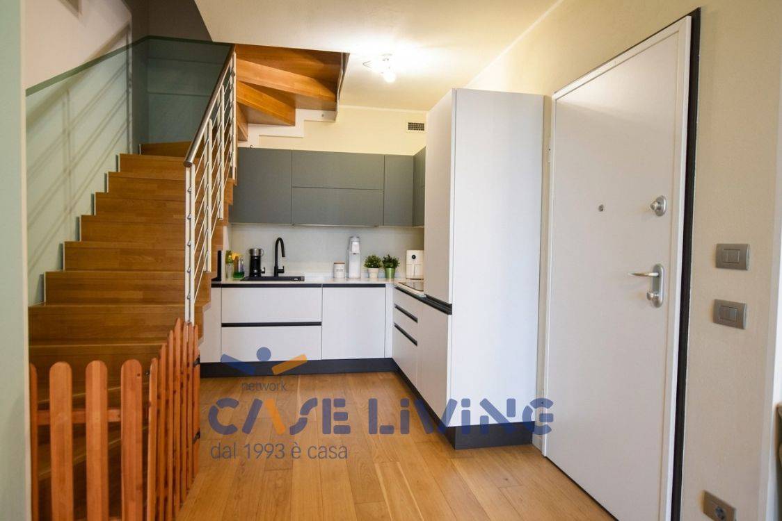 Limmobile, posto al secondo e terzo piano, si sviluppa con una zona living con cucina a vista, disimpegno e un luminoso bagno finestrato completo di vasca e attacco lavatrice.
