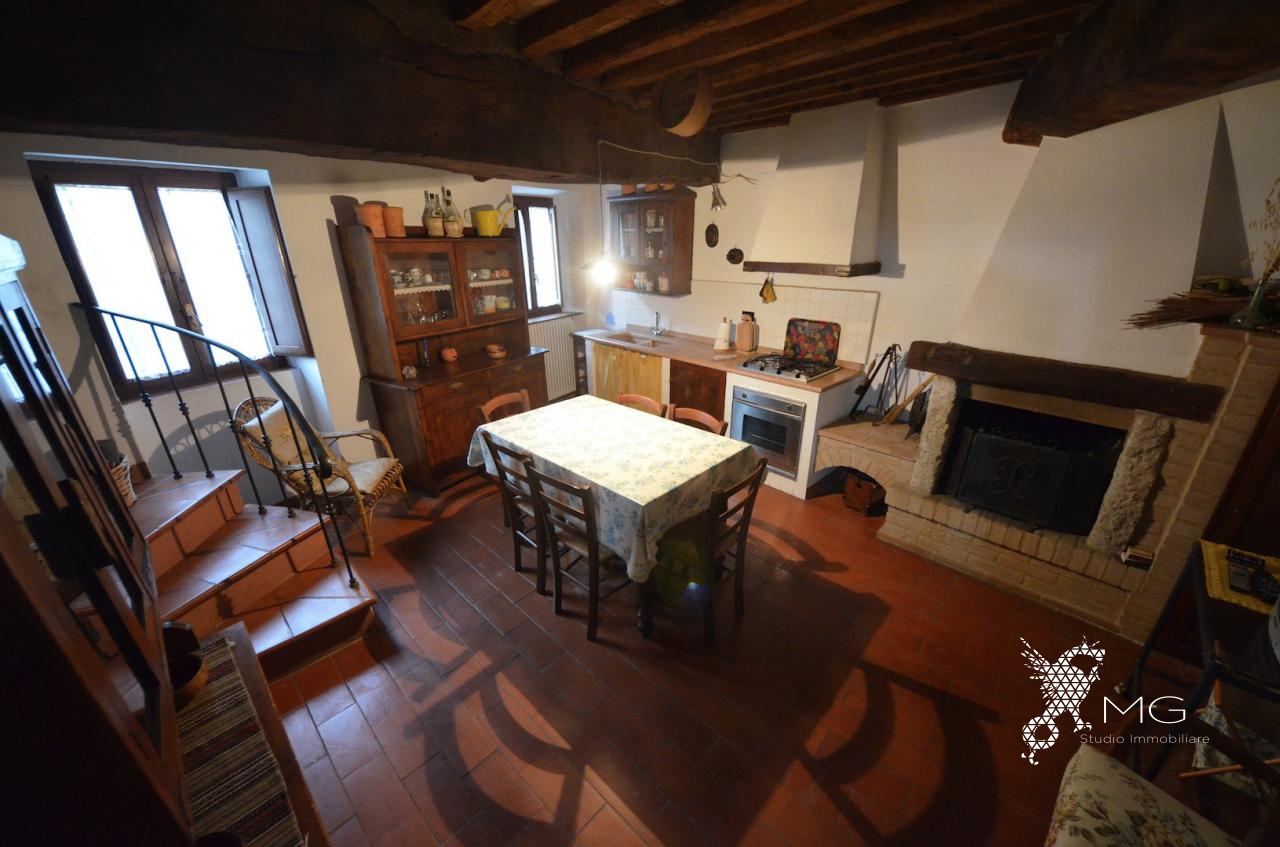 Ingresso da scala condominiale, composto al piano primo da soggiorno/pranzo con angolo cottura e camino ed al piano secondo, collegato da scala interna, da camera matrimoniale, camerina e bagno.