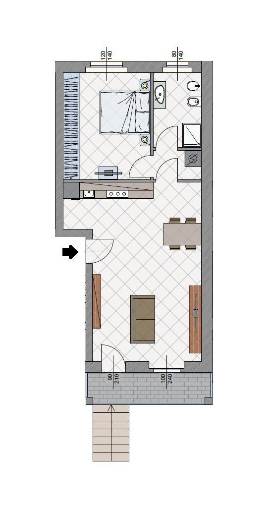 SAN NICOLO' - In palazzina di nuova costruzione CLASSE A, BILOCALE CON GIARDINO PRIVATO composto da soggiorno con angolo cottura con affaccio su balcone coperto e accesso diretto al giardino, disimpegno, camera matrimoniale, bagno finestrato e ripostiglio.