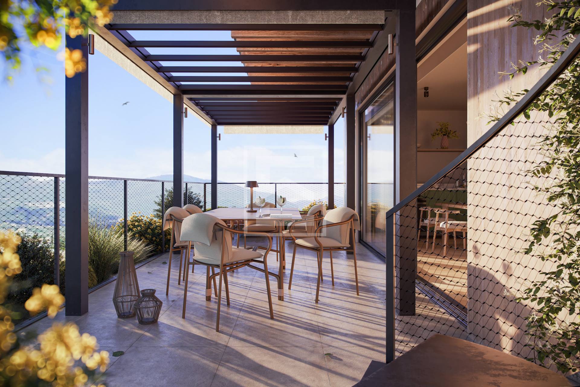 Adiacenti gli appartamenti da 1 a 4 camere (disponibili diverse metrature, con giardino privato o grandi terrazze, con o senza vista lago a seconda del piano). Il concept immobiliare si traduce in unarchitettura innovativa, stile, design e servizio a 5 stelle.