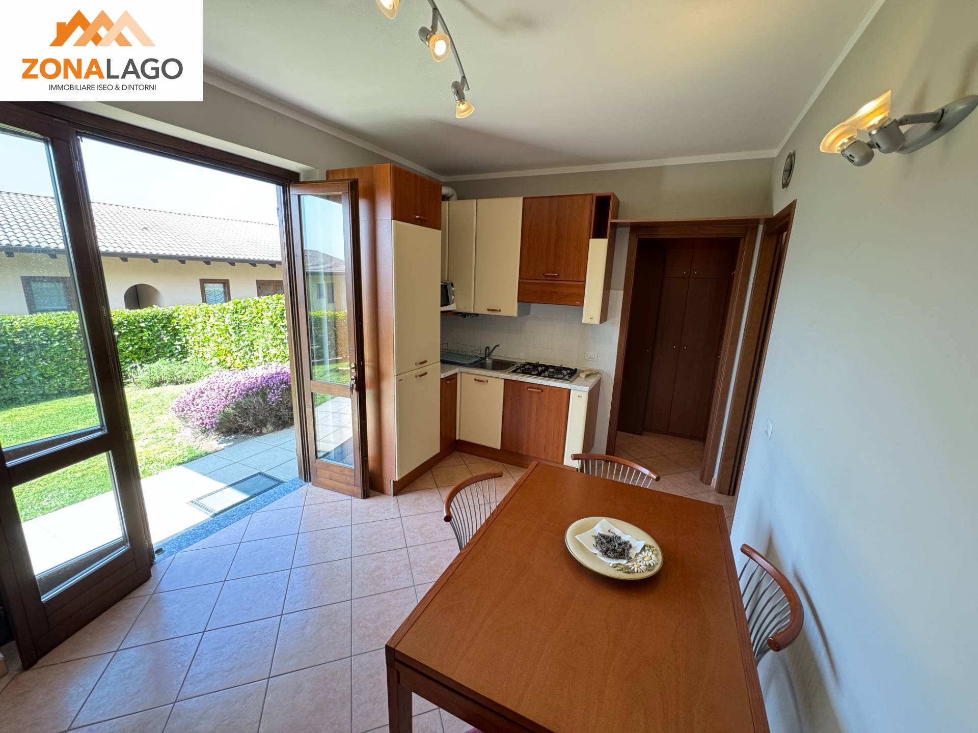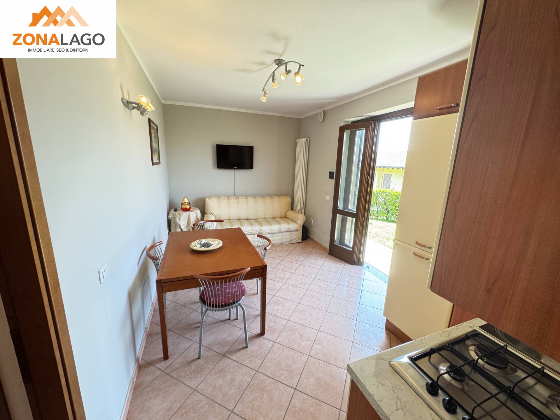 Lago d'Iseo - nel paese di Sale Marasino in splendido residence con piscina, trilocale al piano terra libero sui tre lati, spese condominiali ridotte! Il giardino privato, curato e ben tenuto, oltre alla parte esclusiva pavimentata+ assoluta tranquillit.