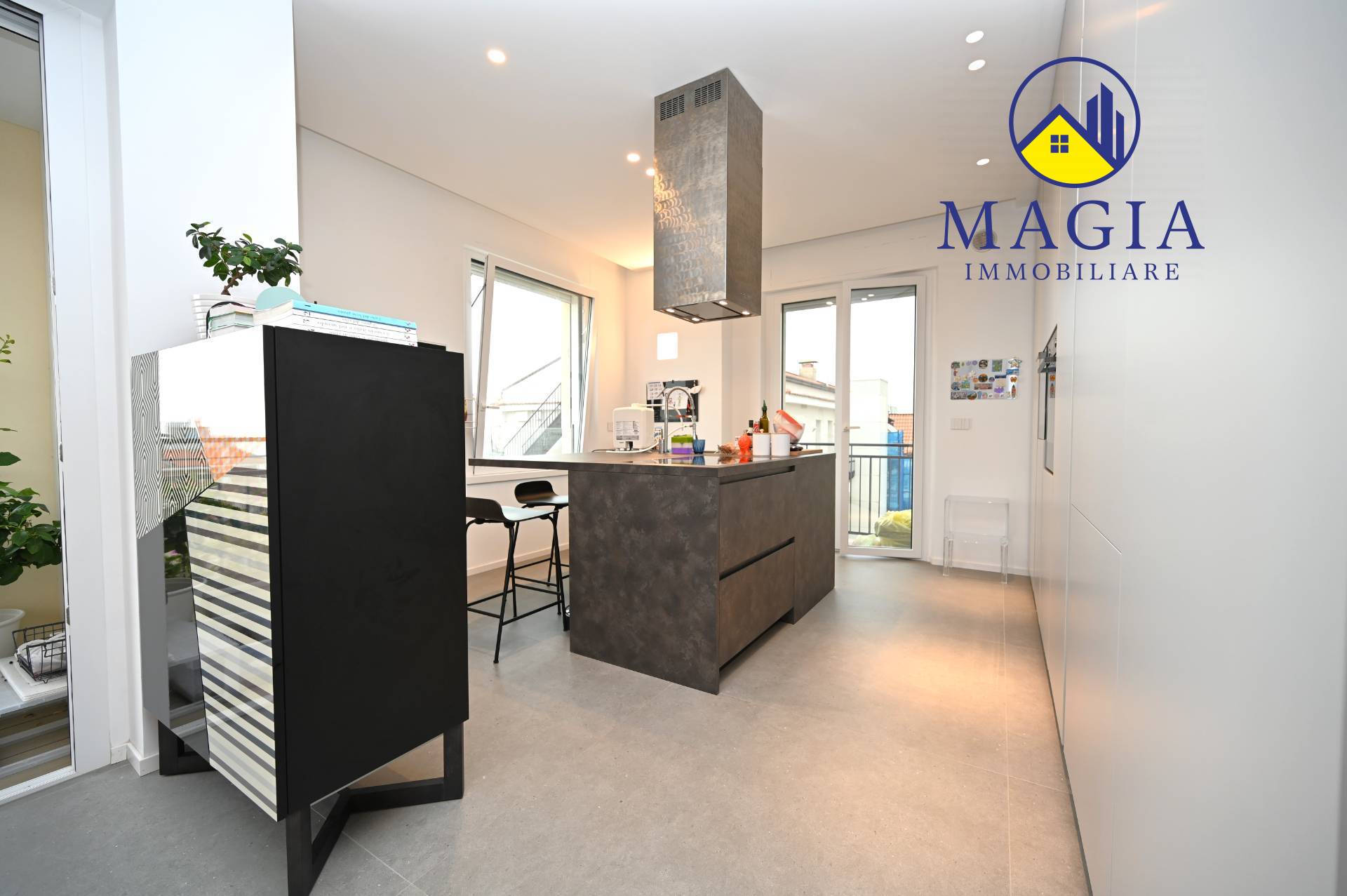 Caratteristiche principali: Ingresso su ampio salone con moderna cucina ad isola, e a vista Camera matrimoniale spaziosa Due comode camere singole Due bagni finestrati con doccia e sanitari sospesi Infissi in PVC con vetrocamera per massimo comfort termico e acustico Aria condizionata installata Parzialmente arredato su misura, con mobili di qualit e dal design elegante Un appartamento ideale per chi cerca comodit, modernit e vicinanza al mare, senza rinunciare a spazi generosi e a una posizione centrale.