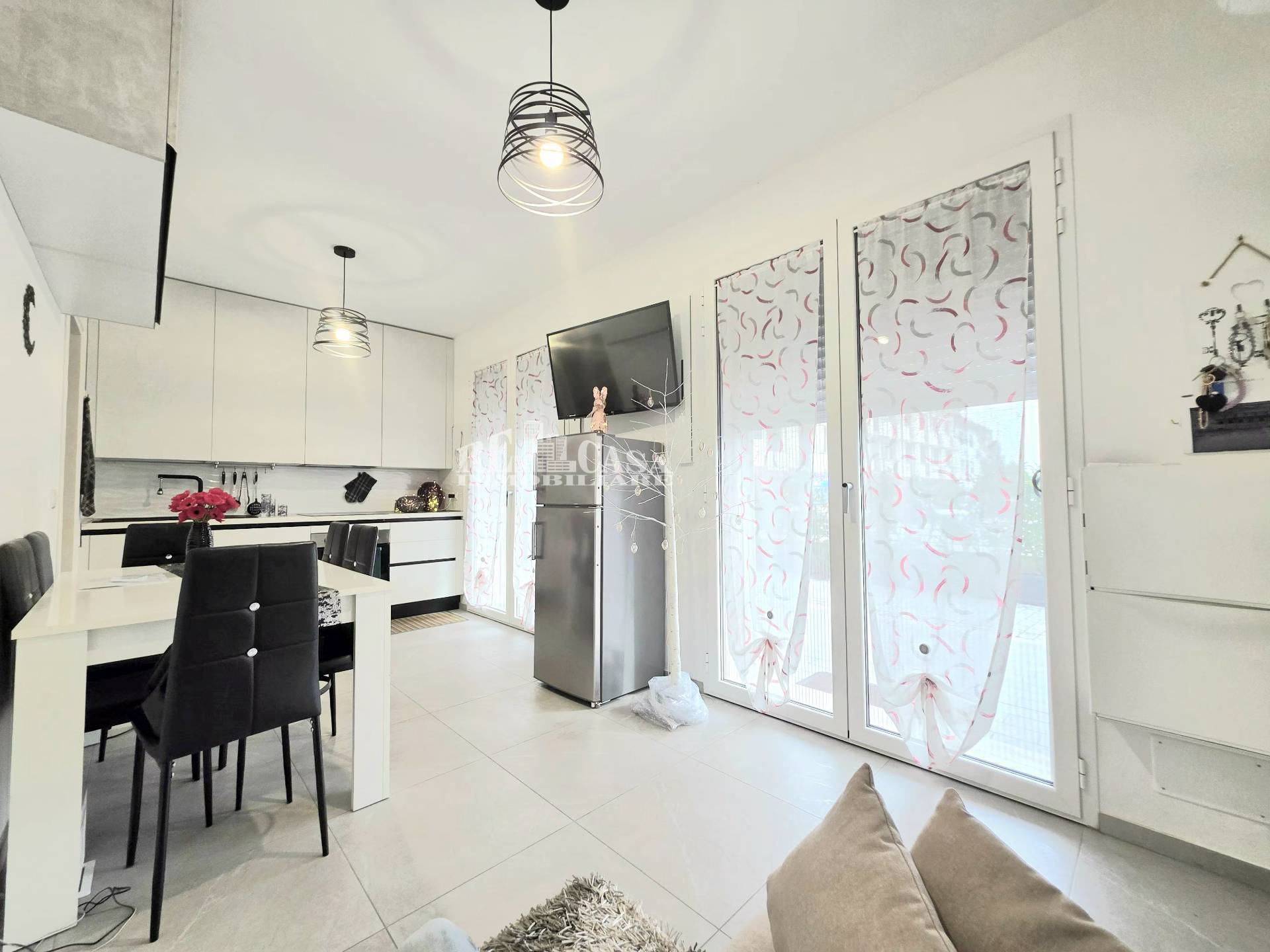 Classe energetica A4. Finiture: pavimentazione in gres porcellanato, infissi interni in alluminio con impianto incorporato per ricorcolo dell'aria, tapparelle elettriche in alluminio, impianto di riscaldamento a pavimento con pompa di calore e impianto di condizionamento con split interni inverter per aria calda / fredda, portone di ingresso blindato, videocitofono, tenda da sole sul lato est e gazebo sul lato nord. FOTOVOLTAICO: impianto forovotaico per fabbisogno condominiale.