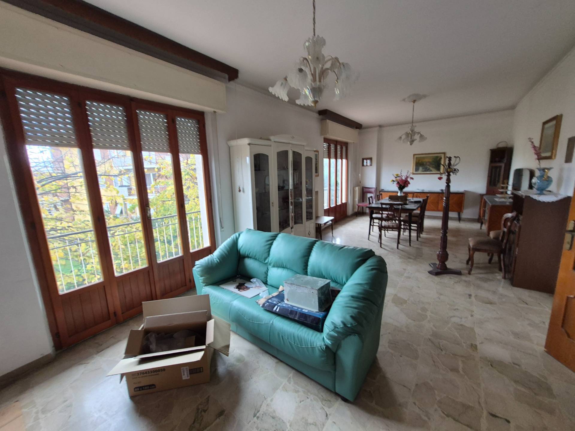 Composto da ingresso su ampio disimpegno, ampio salone/soggiorno con balcone, tinello abitabile con retro- cucina, tre camere e bagno tutto circondato da balconi.