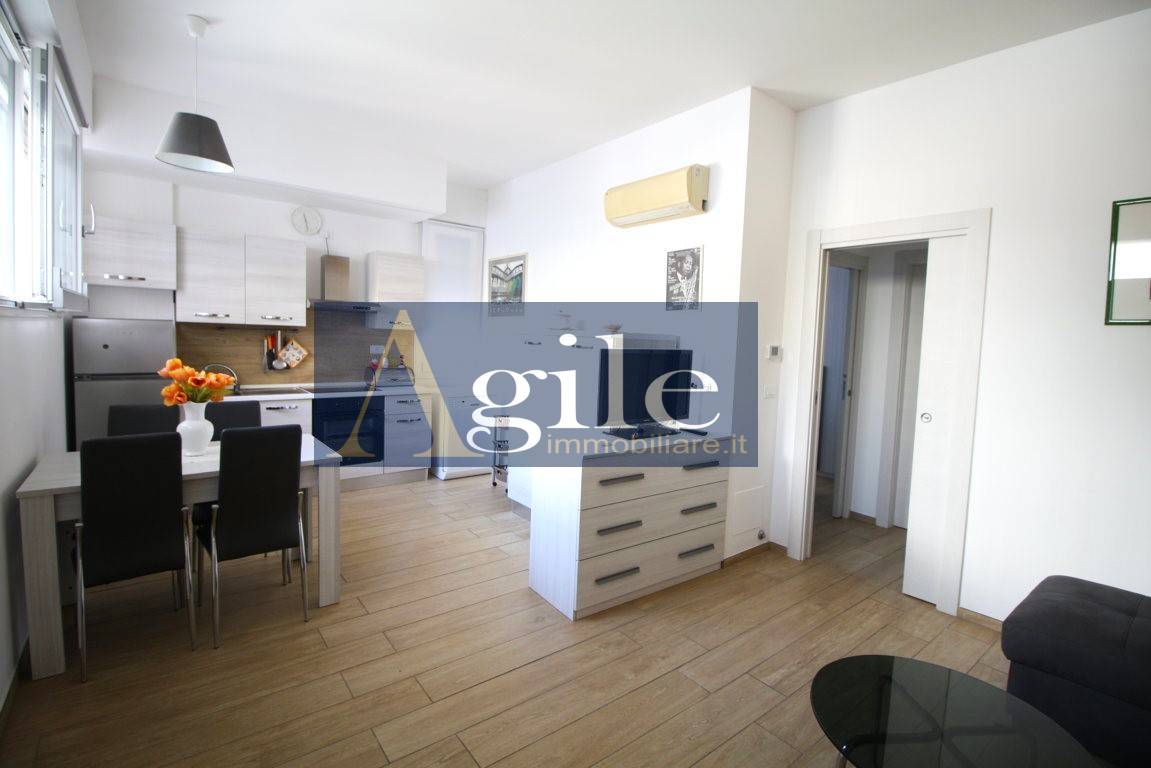 APPARTAMENTO IN VENDITA A SAN BENEDETTO DEL TRONTO a soli 400 mt dal mare - ZONA CENTRALE - NS. RIF. 2980 L'agenzia Agile Immobiliare propone in vendita interessante SOLUZIONE CHIAVI IN MANO: bilocale interamente ristrutturato nel 2023 sito al piano strada facente parte di una palazzina anch'essa recentemente ristrutturata a pochi passi dai principali servizi e a soli 400 mt dal mare. La soluzione immobiliare di circa 50 mq composta da ingresso su disimpegno, soggiorno- cucina in open space, disimpegno zona notte con nicchia ideale da adibire ad angolo lavanderia, una camera da letto matrimoniale, un bagno finestrato con box doccia e viene venduta completamente arredata.