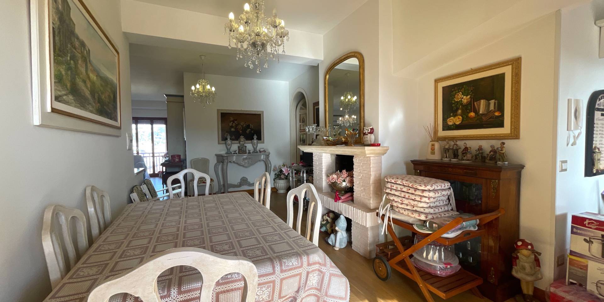ATTICO al Piano Sesto, delle dimensioni di 122 mq. circa, composto da ampio soggiorno con camino, cucina abitabile, 2 camere da letto matrimoniali, 2 bagni (entrambi finestrati), balcone a Nord e terrazzo a Sud per complessivi 32 mq. circa.