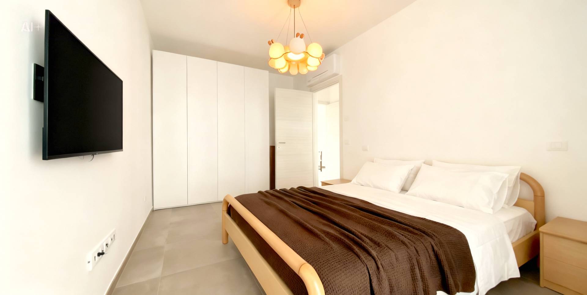 Appartamento di circa 55 mq, sito al primo piano con ascensore di un fabbricato di recente costruzione, composto da ingresso su open space con cucina a vista, due camere da letto (di cui una matrimoniale ed una doppia), un bagno con finestra, oltre due balconi di circa 17 mq complessivi.