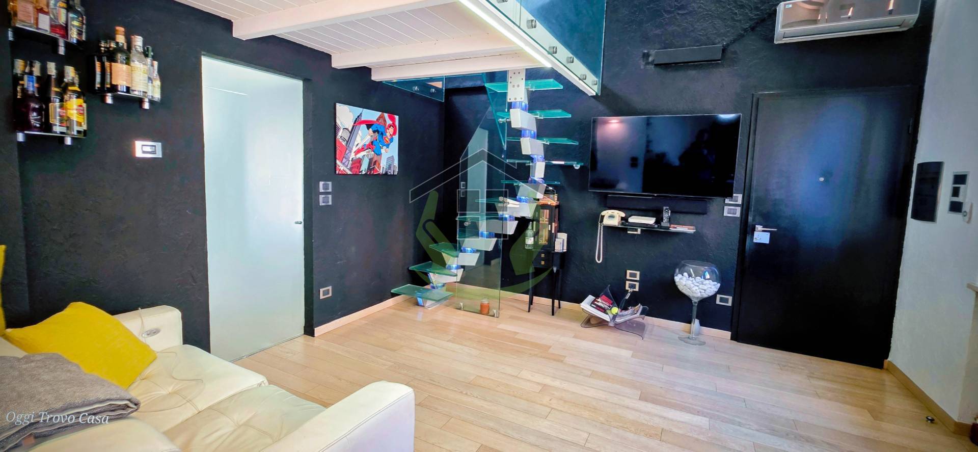 L'unit di 111 mq interni oltre balcone si presenta in condizioni eccelse rifinita tutta con materiali extra capitolato, internamente si presenta con ingresso su ampio soggiorno di 27 mq volendo divisibile, due camere da letto matrimoniali, bagno completo di bagno turco, finestra, sanitari sospesi, scala di pregio di collegamento al piano superiore con ulteriori due locali polifunzionali con ulteriore bagno di servizio finestrato.