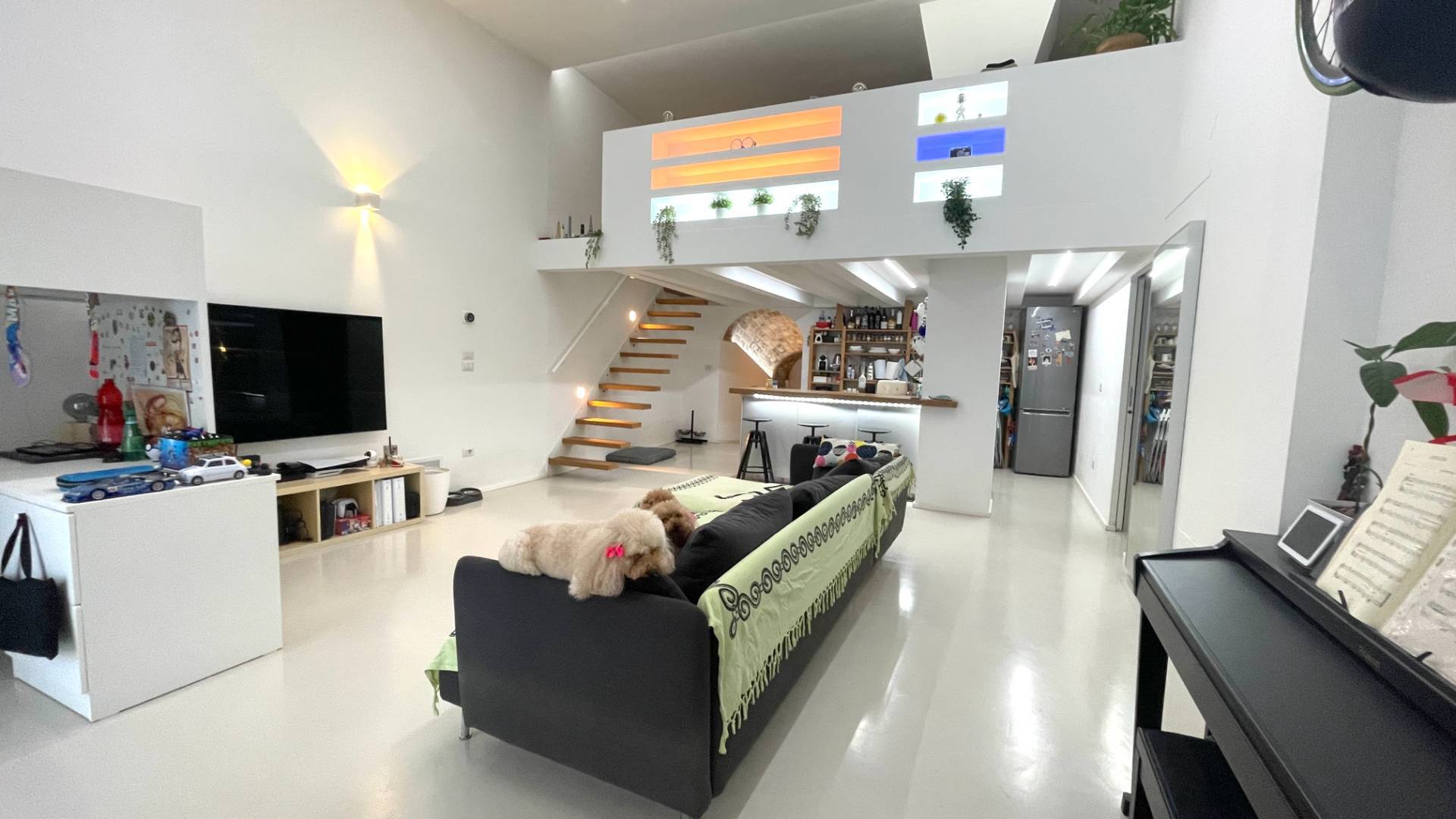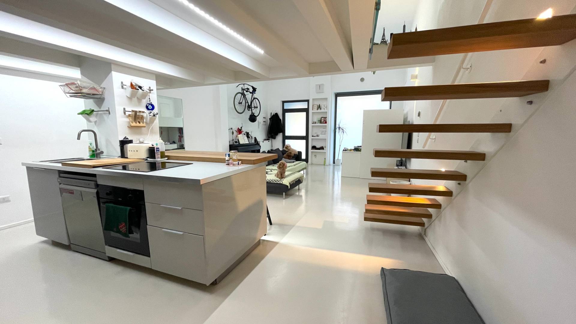 Lo Spazio: Open space arioso con un soppalco di 17 mq, perfetto come zona notte riservata o ufficio creativo.