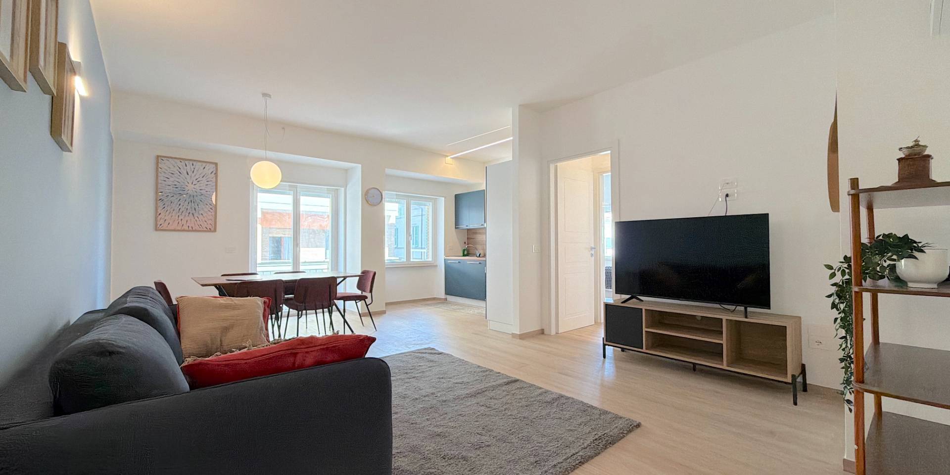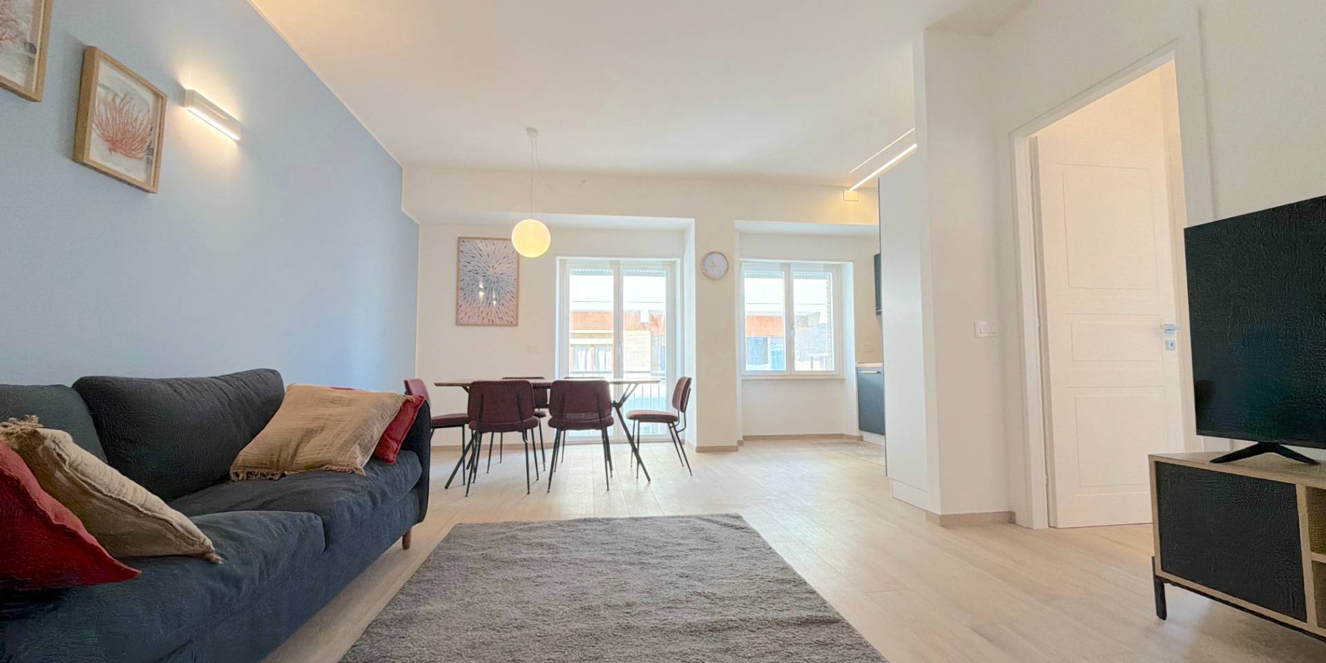 Lappartamento stato oggetto di una ristrutturazione totale e radicale: nuova distribuzione interna, pavimentazioni moderne, infissi in alluminio con doppio vetro, porte interne, bagno completamente rifatto e impianti elettrico e di climatizzazione nuovi e certificati, riscaldamento a pavimento sull'intera superficie.