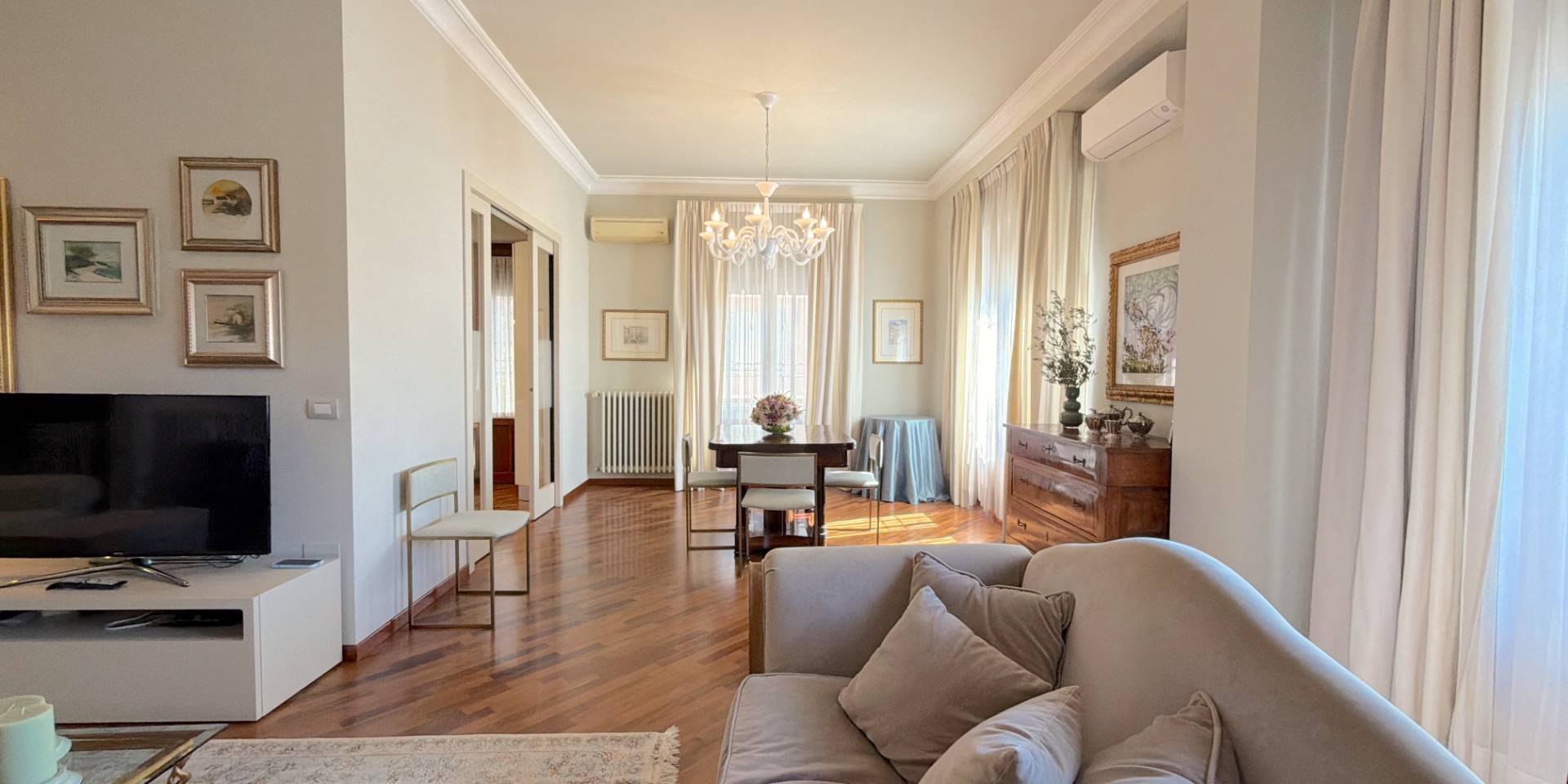Una ristrutturazione completa, in stile classico, fatta con criterio e mantenuta in condizioni impeccabili.