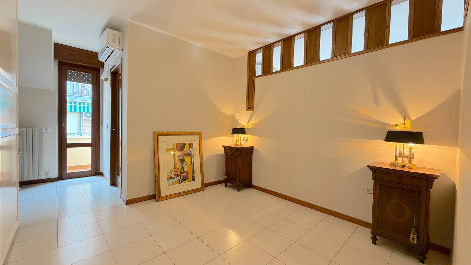 Completano la propriet tre piccoli balconi, per una superficie complessiva di circa 3 mq. Limmobile si presenta in condizioni impeccabili: pavimentazione in gres, impianti a norma, climatizzazione presente in tutti gli ambienti, porte interne di ottima qualit e bagno aggiornato.