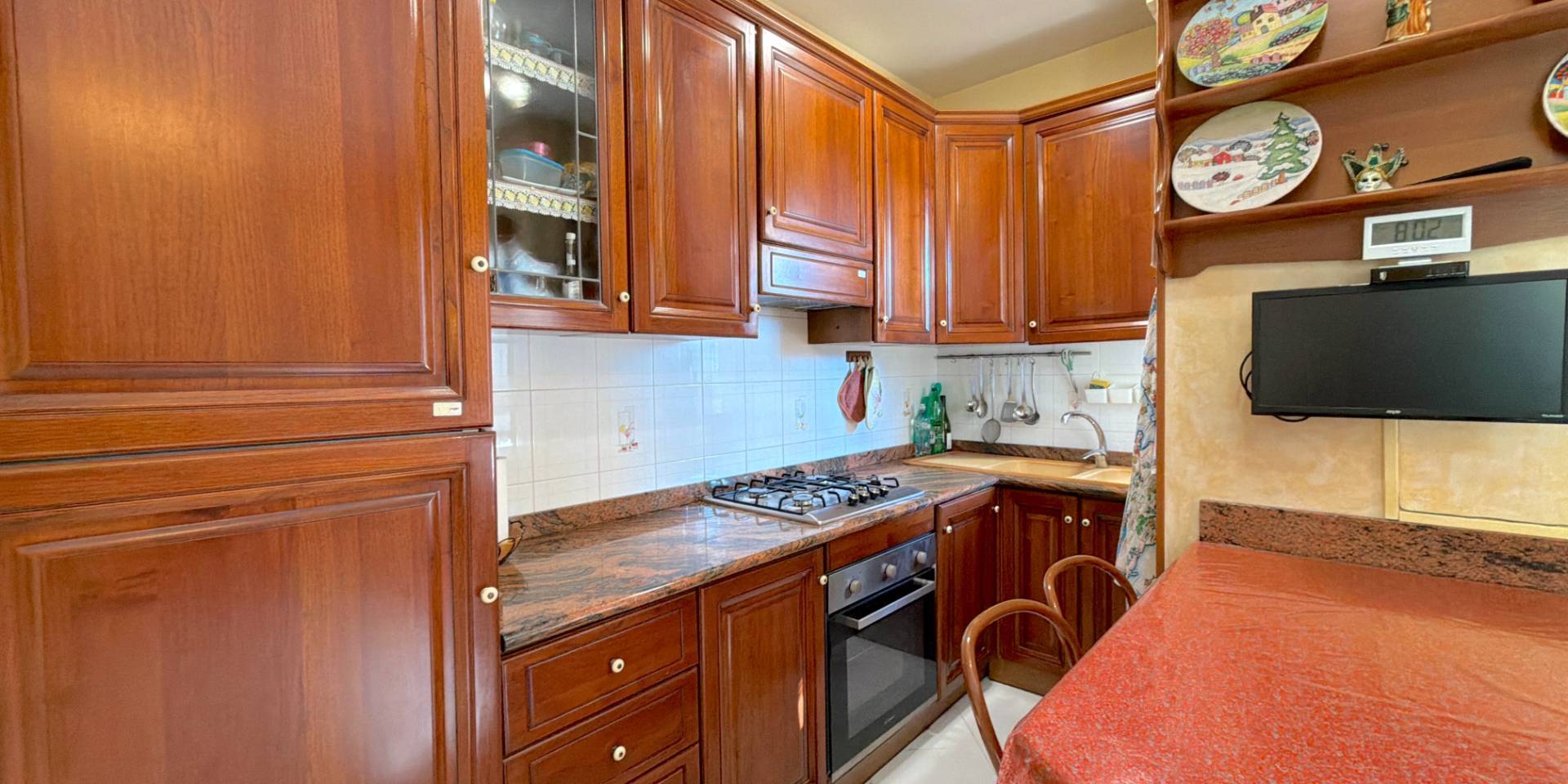 L'appartamento si presenta in buone condizioni, con pavimentazione in monocottura sull'intera superficie, infissi in legno douglas con doppio vetro, impiantistica elettrica e di riscaldamento a norma, climatizzazione in alcuni ambienti.