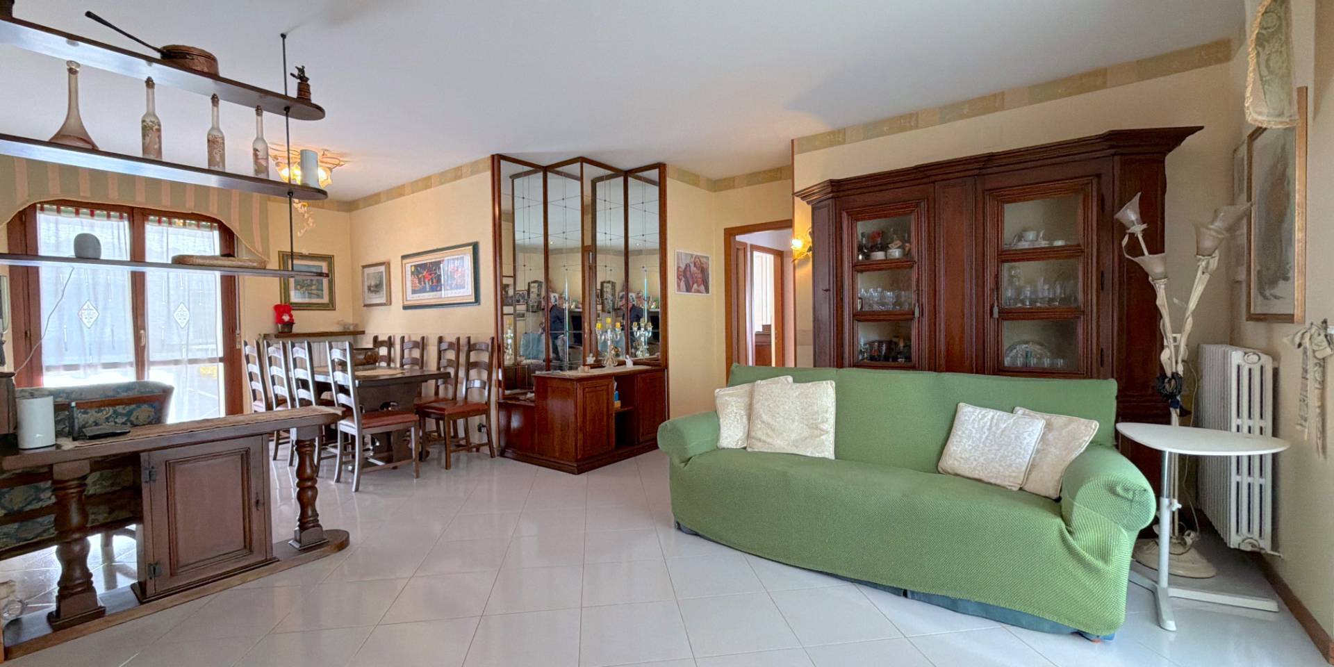 Appartamento per civile abitazione delle dimensioni di 110 m circa coperti, composto da ingresso su ampio soggiorno, sala da pranzo, cucina solo cottura, tre camere da letto (di cui due ampie matrimoniali ed una comoda doppia), due bagni entrambi forniti di finestra.