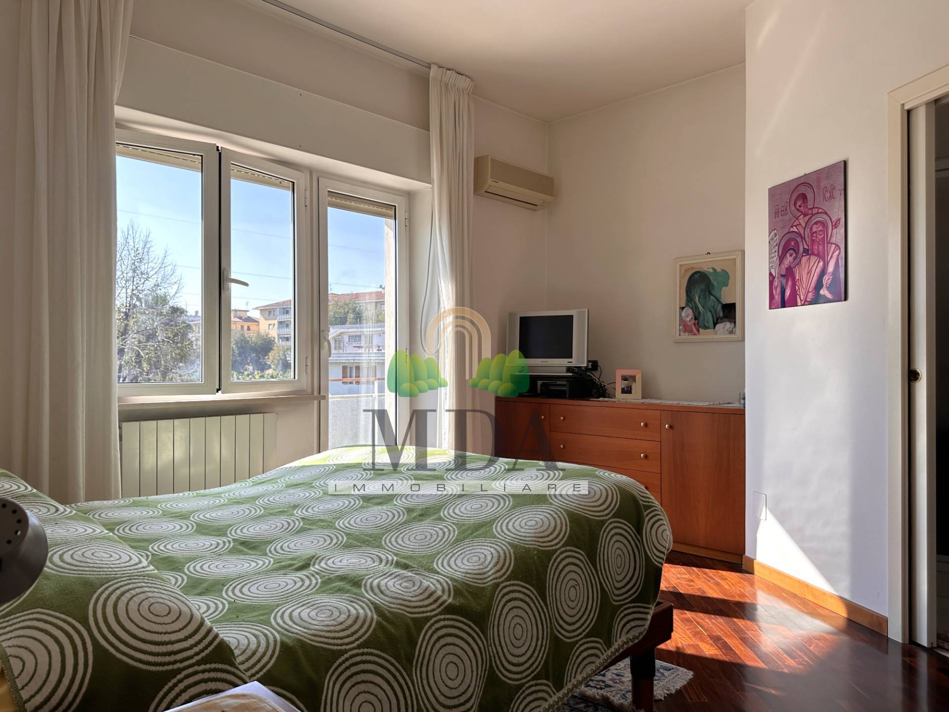 Dallo studio e da una delle camere matrimoniali possibile accedere a due distinti balconi esposti a sud-est. Nel soggiorno e in ognuna delle tre camere c' il condizionatore.