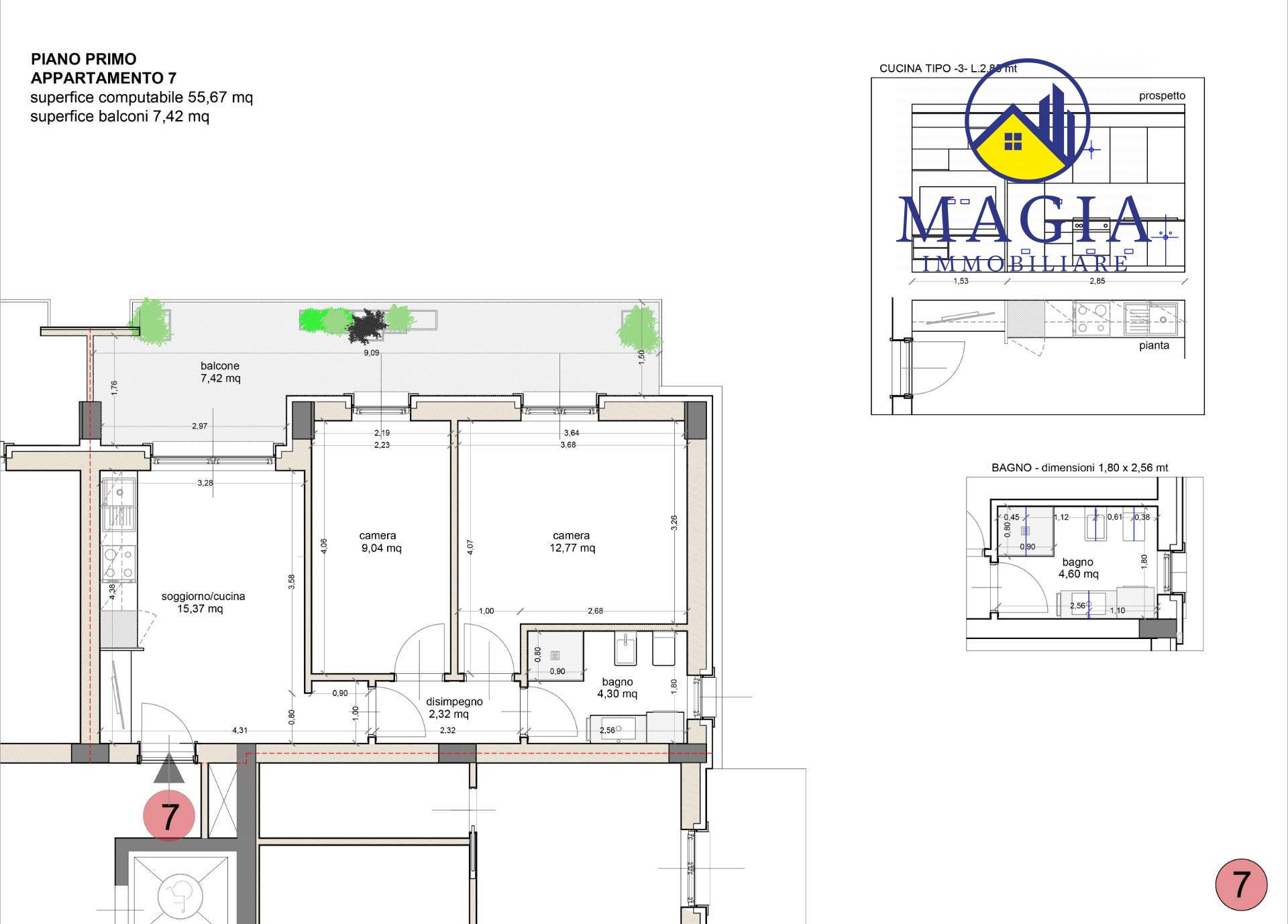 Caratteristiche principali Superficie interna: 55,67 mq Balcone: 7,42 mq Zona giorno con soggiorno e cucina a vista, accesso diretto al balcone Disimpegno funzionale Cameretta con affaccio sul balcone della zona giorno Camera matrimoniale con affaccio sul balcone della zona giorno Bagno finestrato con doccia Comfort & Qualit Palazzina dal design moderno ed accattivante Spazi studiati per garantire comfort e funzionalit Finiture di pregio Massima classe energetica per risparmio e sostenibilit Consegna prevista: Giugno 2026 Possibilit di acquistare posto auto o garage con prezzo da computare a parte.