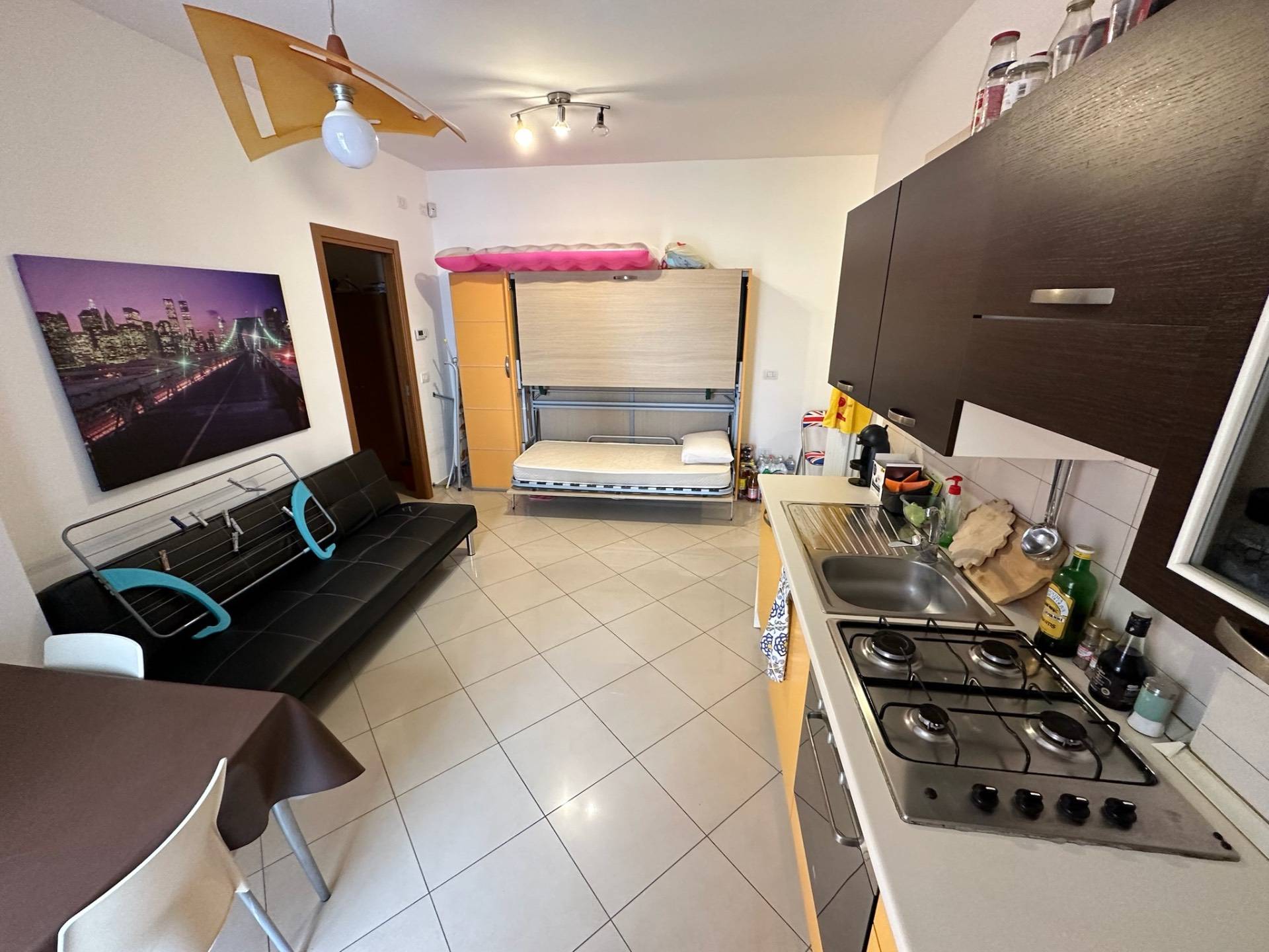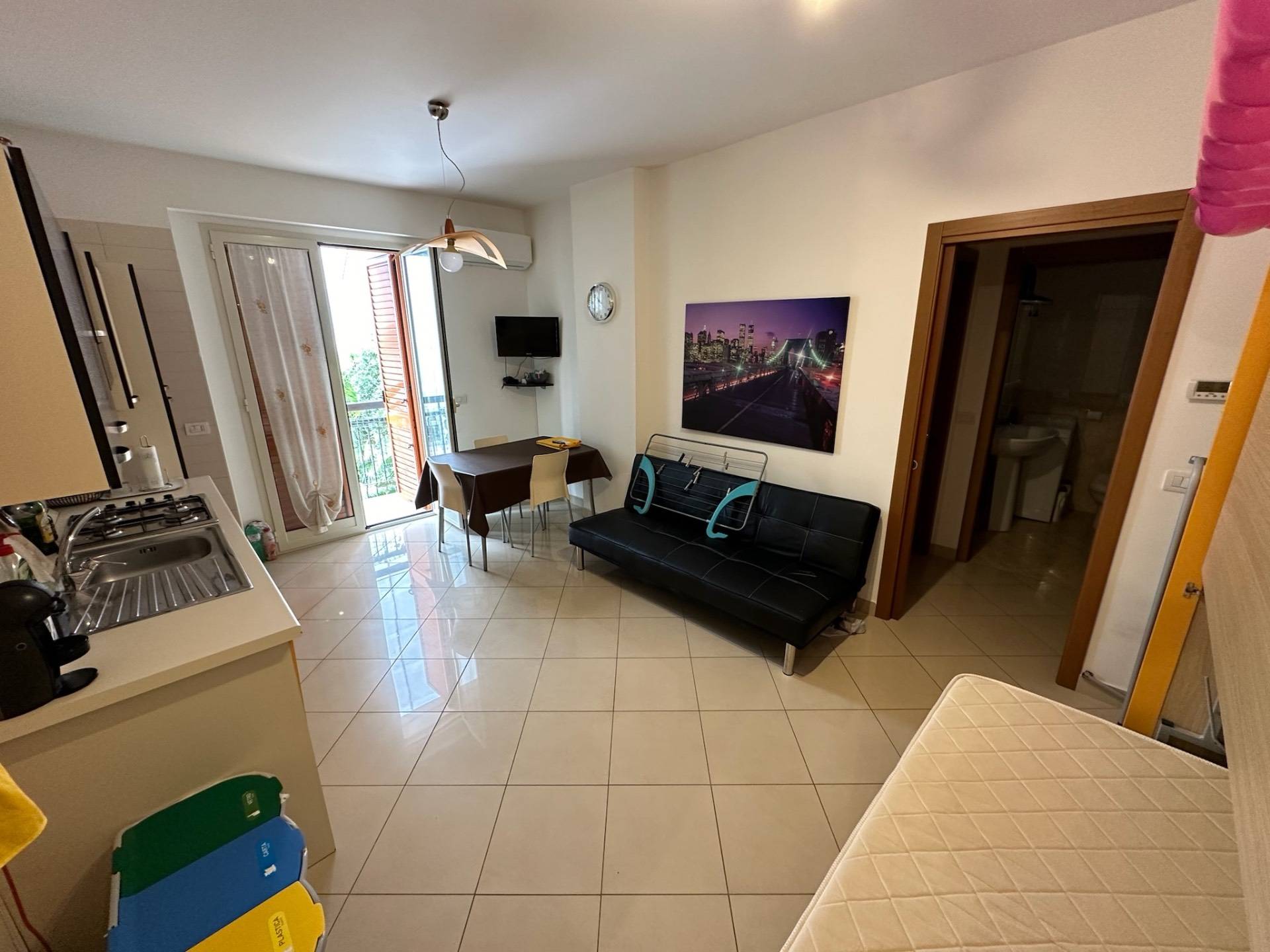 Si sviluppa su 52 mq calpestabili oltre due balconi di circa 6 mq. per un totale commerciale di circa 55 mq. L'immobile si trova al primo piano di un edificio dotato di ascensore e a pochi passi dal mare. Entrando nell'appartamento, si accede ad un ampio soggiorno con angolo cottura e balconcino, arredato con gusto e funzionalit.