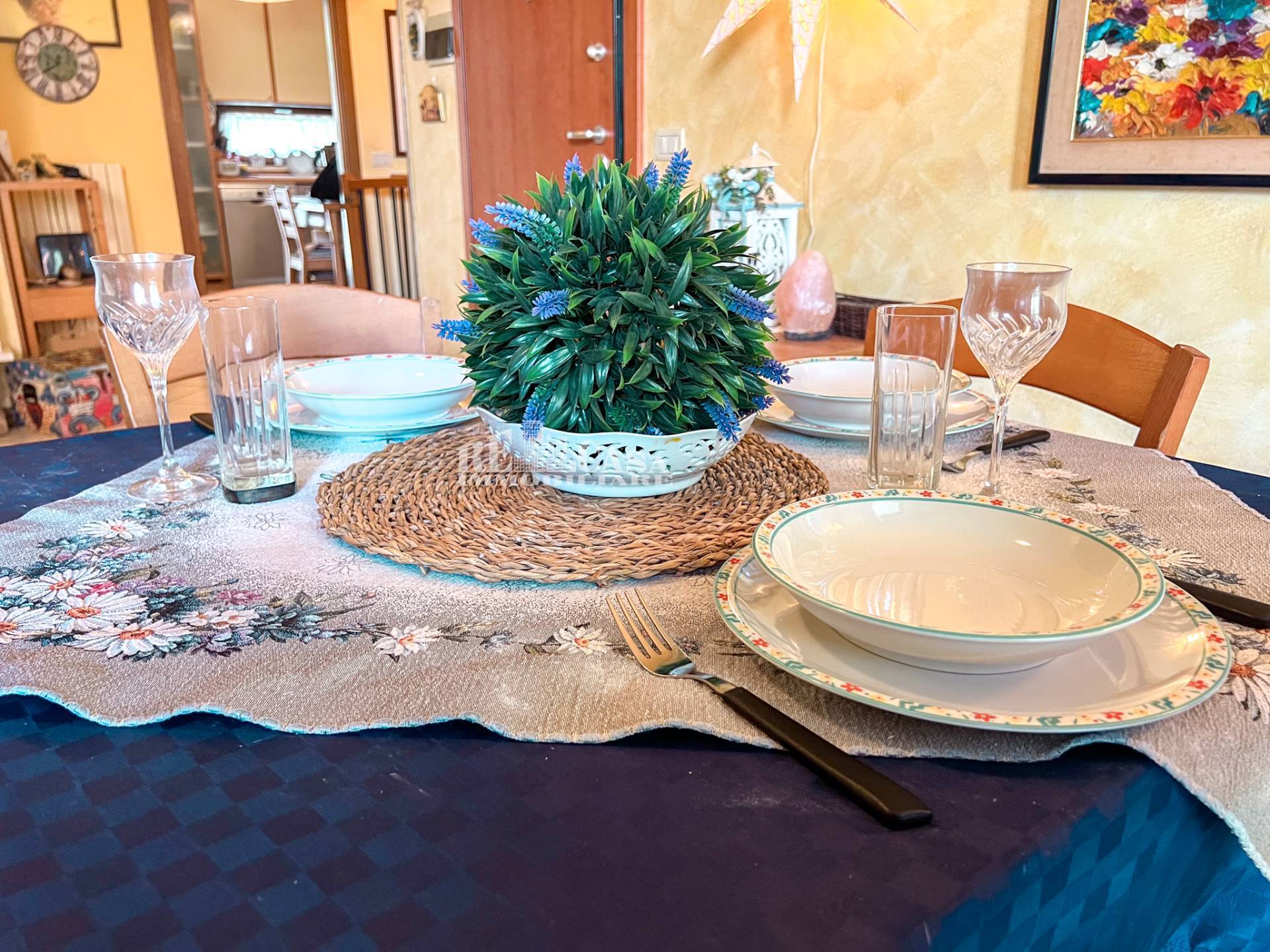 Internamente rifinito con pavimentazione in ceramica nella zona giorno, parquet nella zona notte, il piano seminterrato completamente rifinito con pavimentazione in ceramica, impianto di riscaldamento, impianto elettrico.