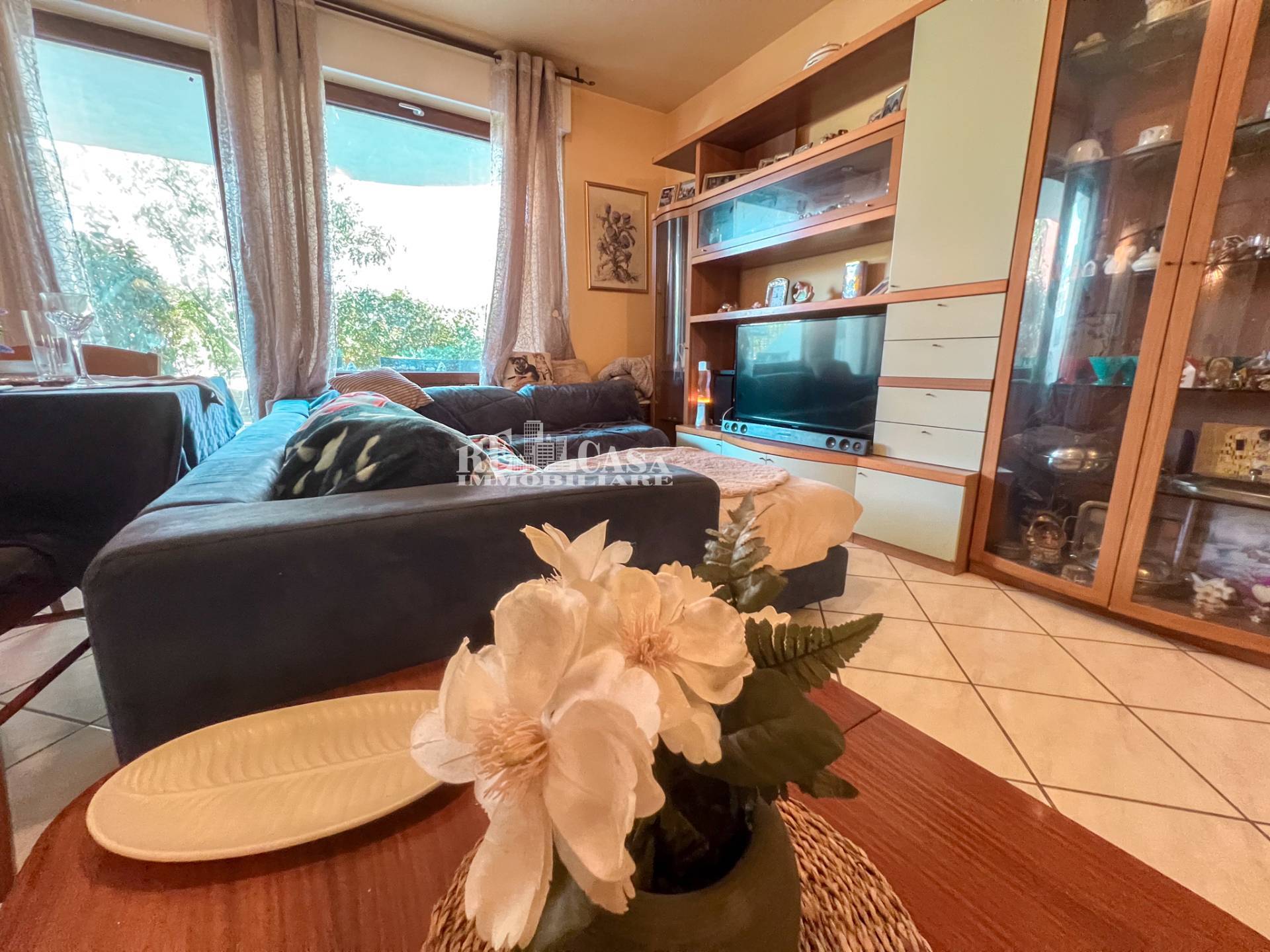 Completa la propriet un garage di mq 24 al piano seminterrato e una corte esterna perimetrale a tutto l'appartamento per una superficie di mq 200 in parte a giardino ed in parte pavimentata.