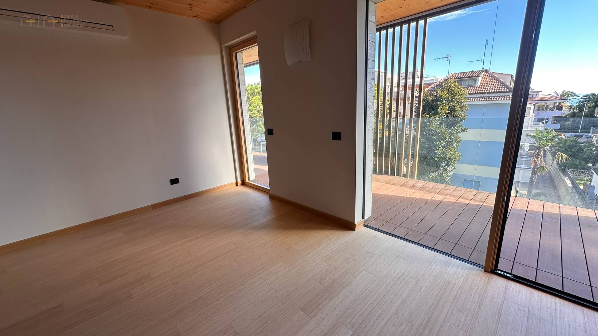 Proponiamo in vendita un appartamento al 3° piano, estremamente luminoso grazie alla tripla esposizione, di circa 90 mq, con terrazzi panoramici di 38 mq con pavimentazione in decking, affacciati sul mare e sulle colline ideali per vivere gli spazi esterni in ogni stagione.
