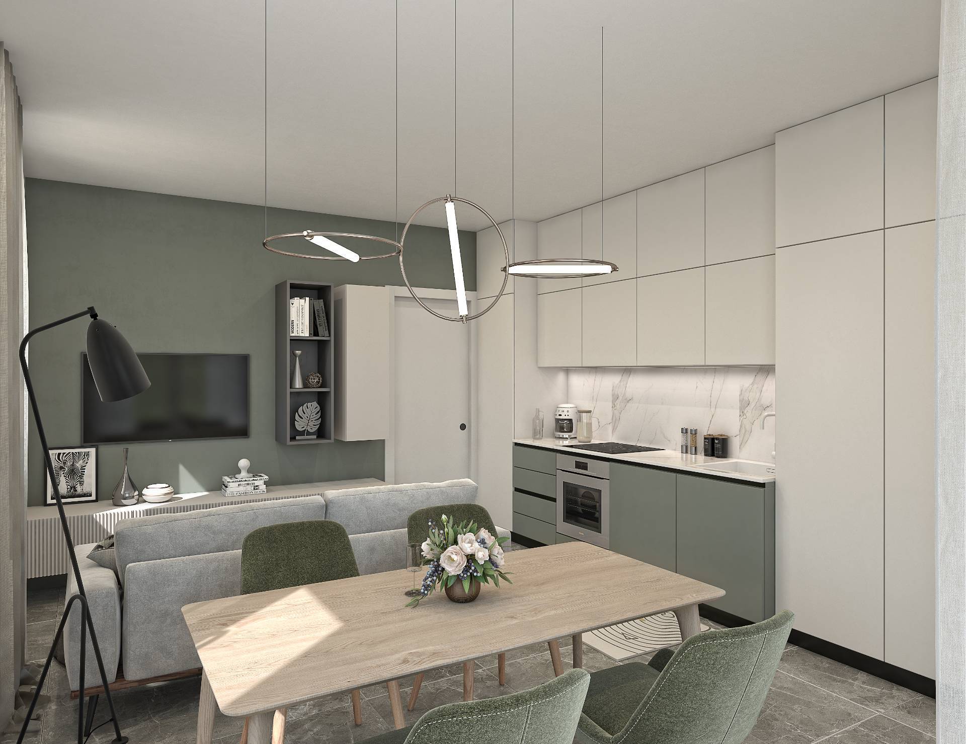 Appartamento di nuova costruzione, sito al PIANO TERRA, delle dimensioni di 64 mq. circa, composto da soggiorno con angolo cottura, 2 camere da letto (matrimoniale e singola) e bagno.