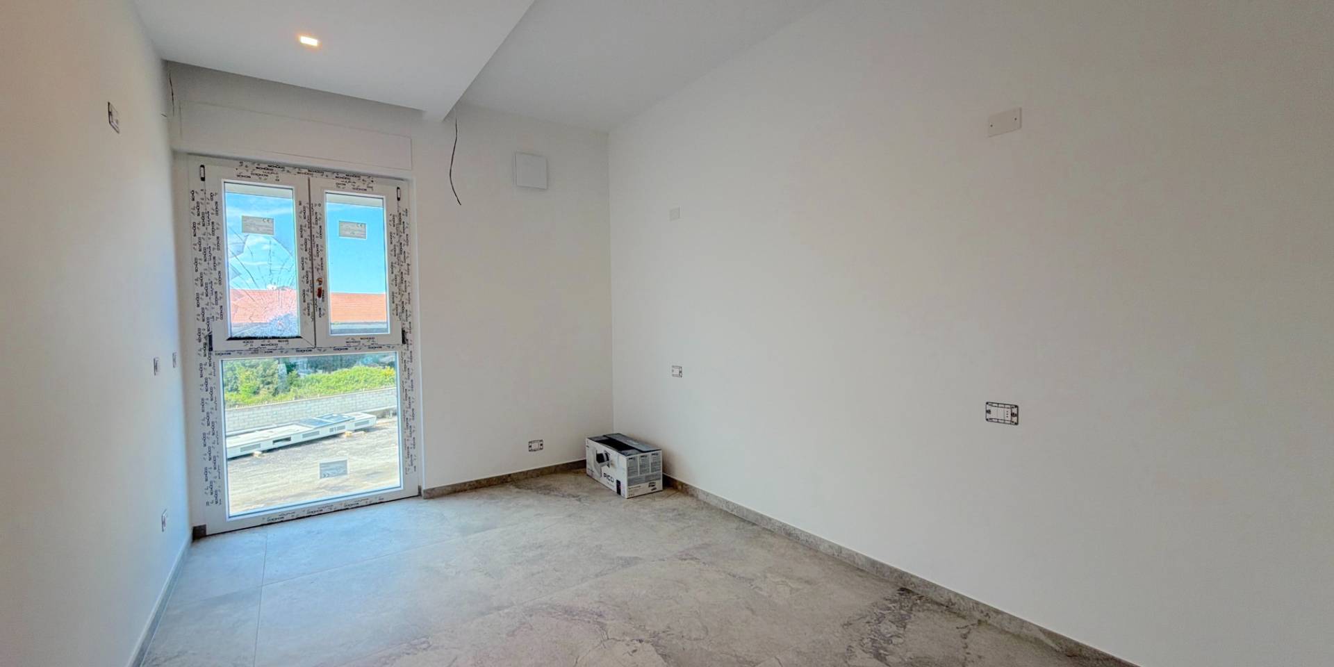 L'appartamento, di nuova costruzione, ben rifinito con pavimentazione in gress porcellanato, infissi di qualit Shuco, riscaldamento a pavimento, numerose controsoffittature con luce riflessa, tapparelle elettriche, impianto di allarme predisposto, controllo domotico del riscaldamento/clima a distanza, predisposizione completa per aria condizionata in tutte le stanze (mancante solo dello split nella stanza, ma gi fornito di inverter esterno), impianto fotovoltaico privato di 3,5 Kw per ogni singolo appartamento, con accumulo privato di 7 Kw per ogni appartamento.