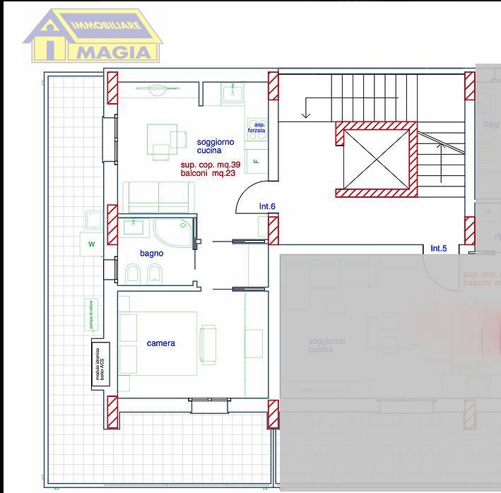 Lappartamento di mq. 39 si trova al secondo piano, con Balcone per una superficie di 23mq. Suddiviso internamente, con una zona giorno con soggiorno e cucina a vista, una camera matrimoniale, un bagno.