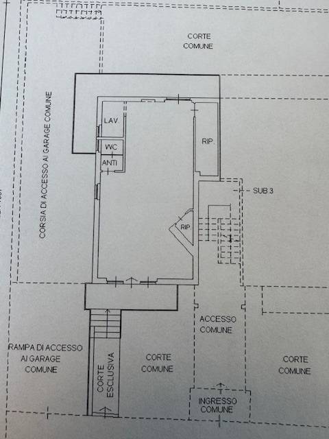 L'immobile composto attualmente da un ambiente ampio e luminoso ma con la possibilit con divisori interni di realizzare una cucina/soggiorno, due camere e due bagni oltre ad un balcone perimetrale su tre lati. Completa la propriet un garage al piano -1, con ingresso da uno scivolo comodo per l'ingresso dell'automobile.