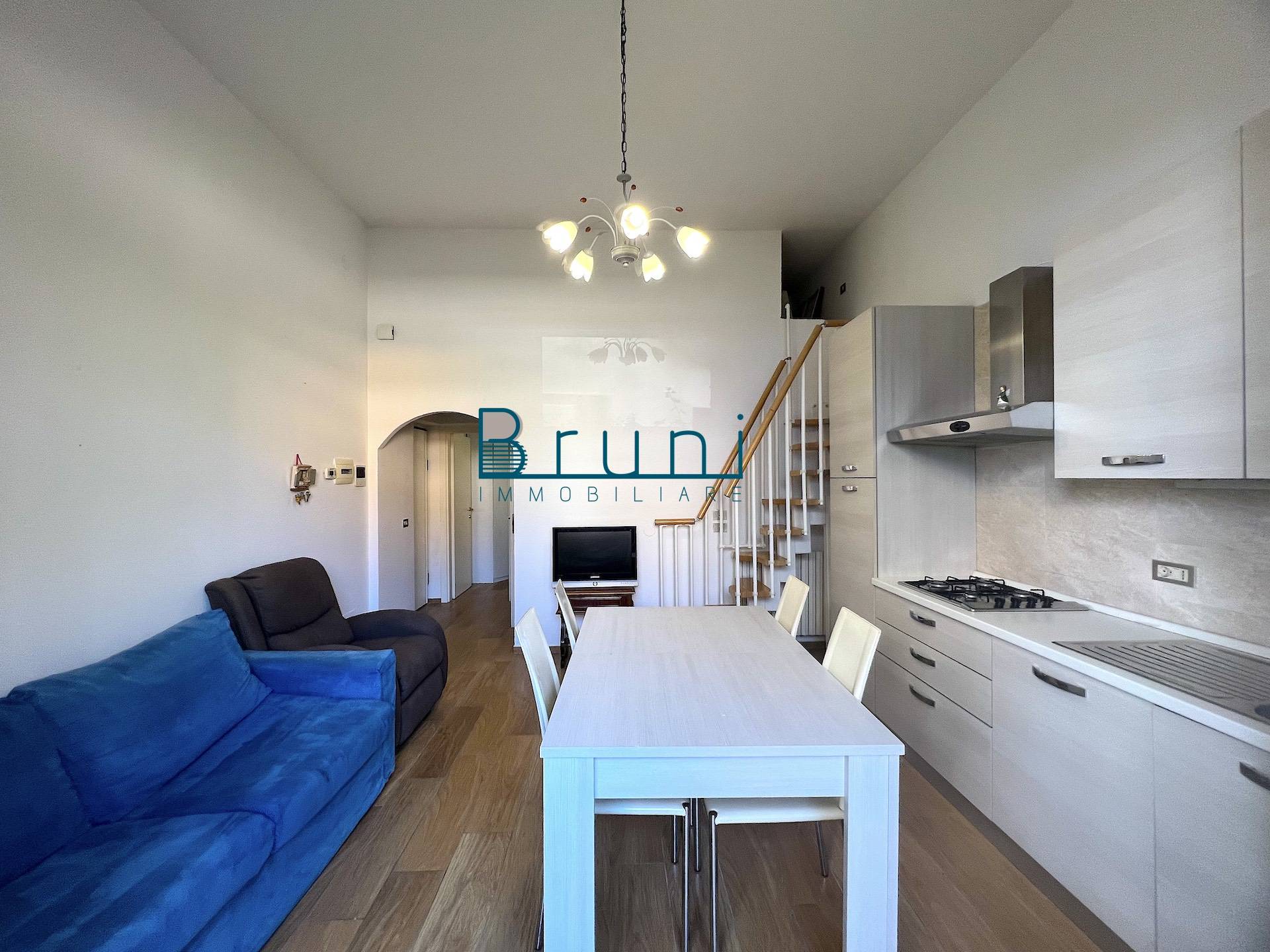 Composto da: ingresso su disimpegno, soggiorno con cucina a vista e piccolo soppalco ad uso ripostiglio, una camera da letto matrimoniale, un bagno con finestra e cabina doccia.