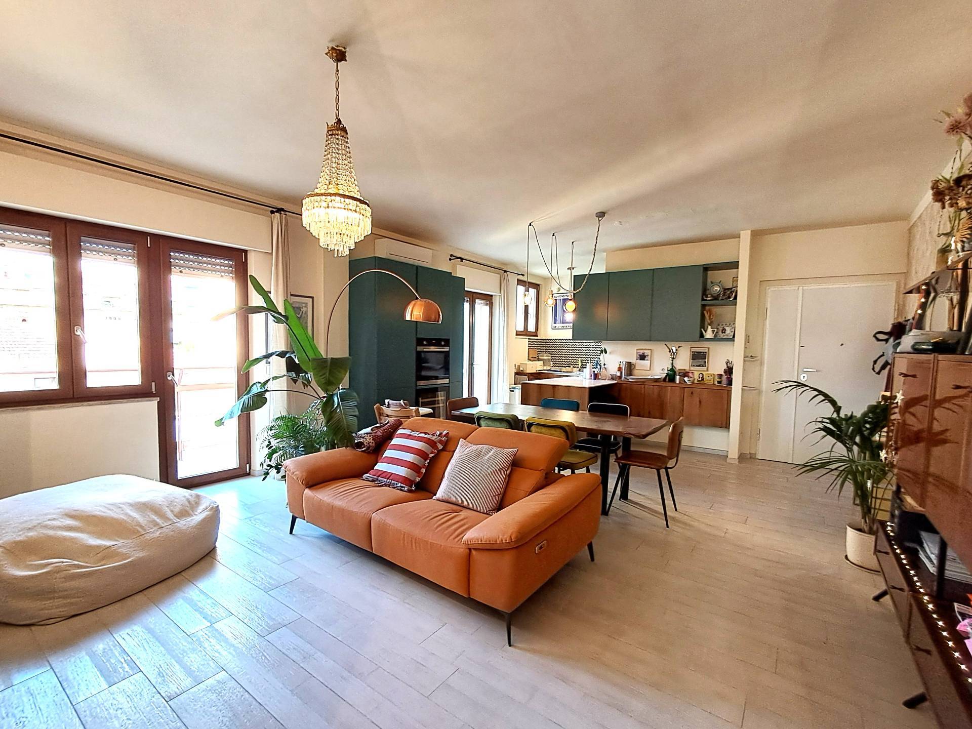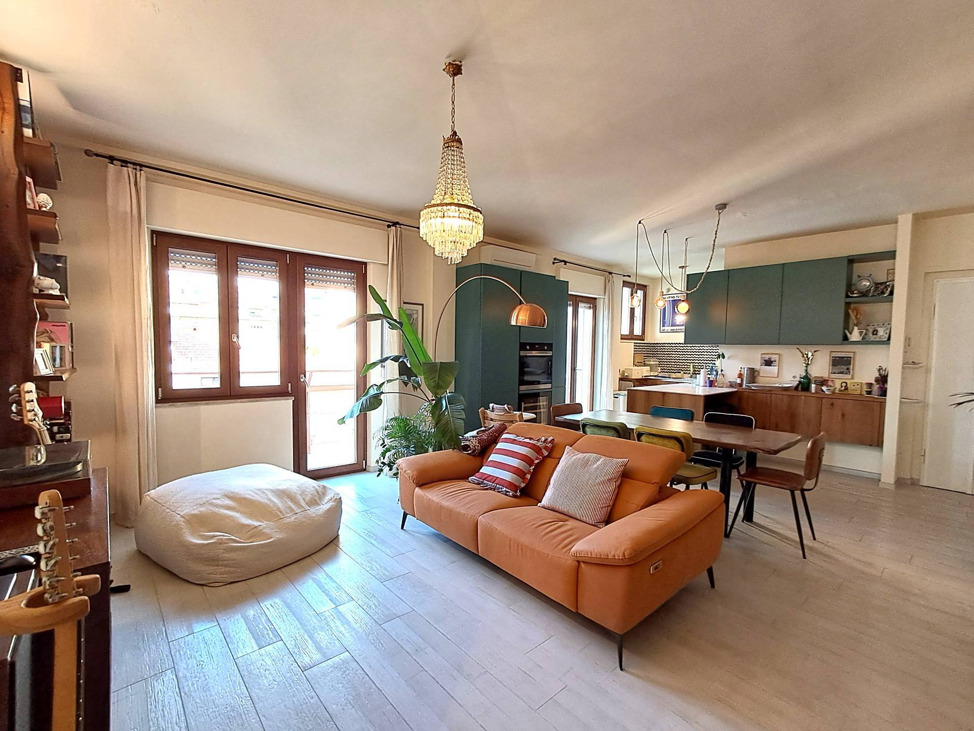 L'appartamento composto da ampio soggiorno con cucina a vista che rappresenta il cuore della casa oltre un balcone perimetrale, mentre nella zona notte troviamo tre camere matrimoniali di cui una con cabina armadio, due bagni entrambi con finestra e un'altro balcone.