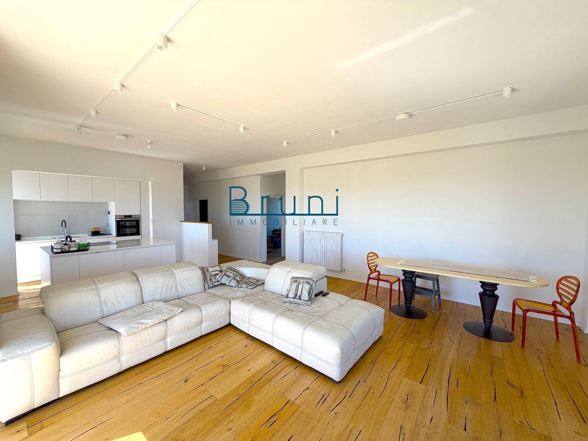 Cos composto: ingresso su disimpegno, ampio e luminoso soggiorno con cucina a vista, tre camere da letto di cui una matrimoniale, una doppia, una singola, due bagni entrambi con finestra e cabina doccia, oltre a tre balconi di circa 25 mq complessivi di cui uno con splendida vista panoramica.
