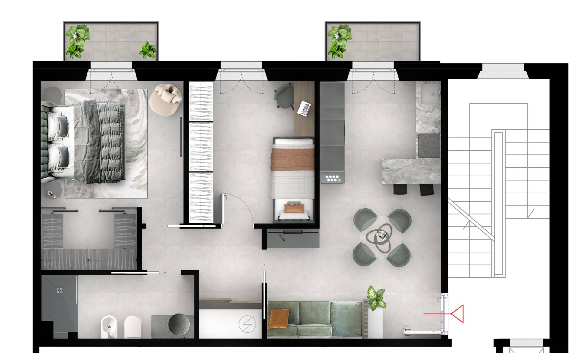 L'appartamento venduto finito esternamente con l'esterno nuovo, tutti gli infissi esterni e relative serrande, balcone, portone di ingresso e predisposizioni di tutti gli allacci.