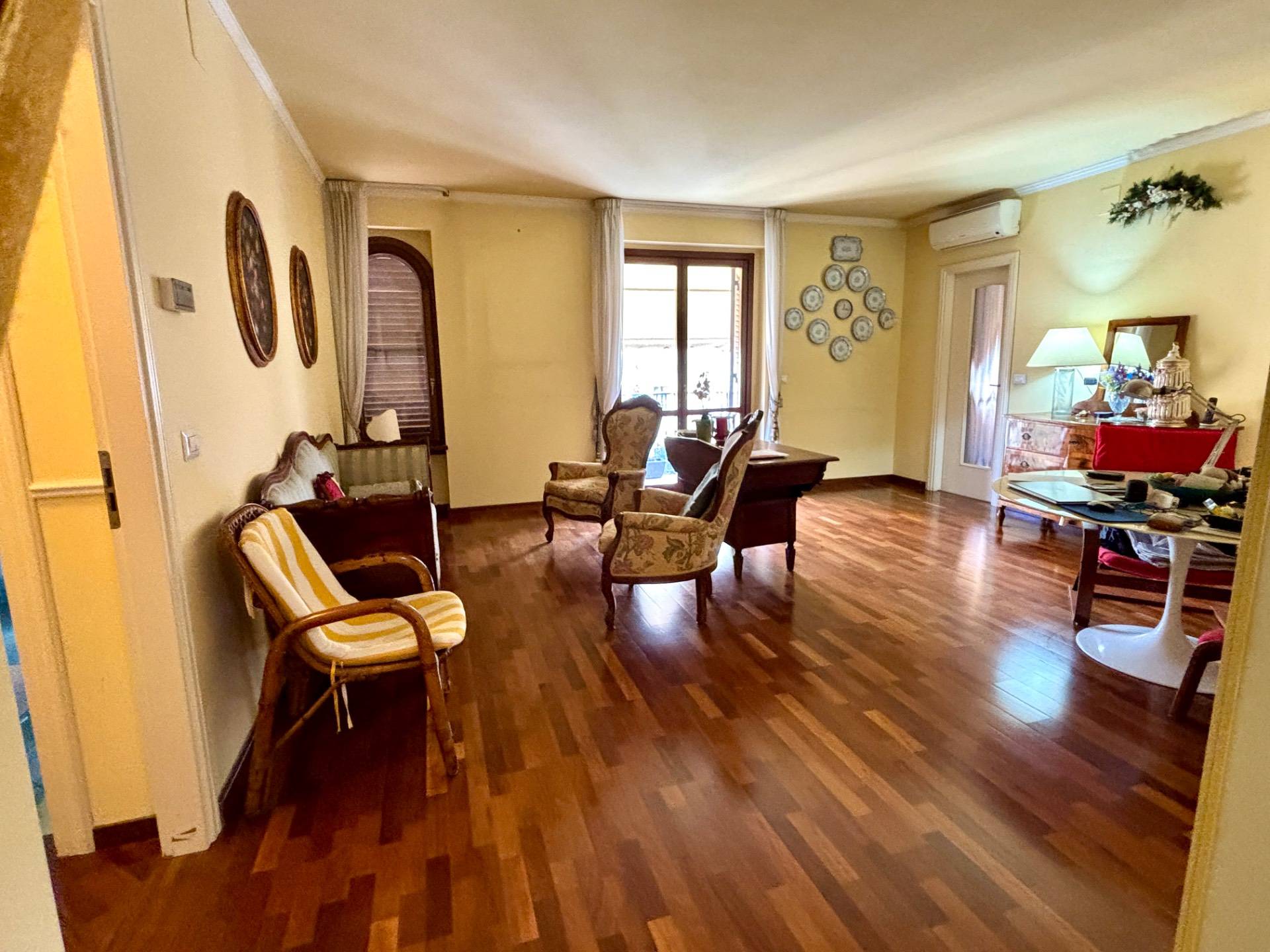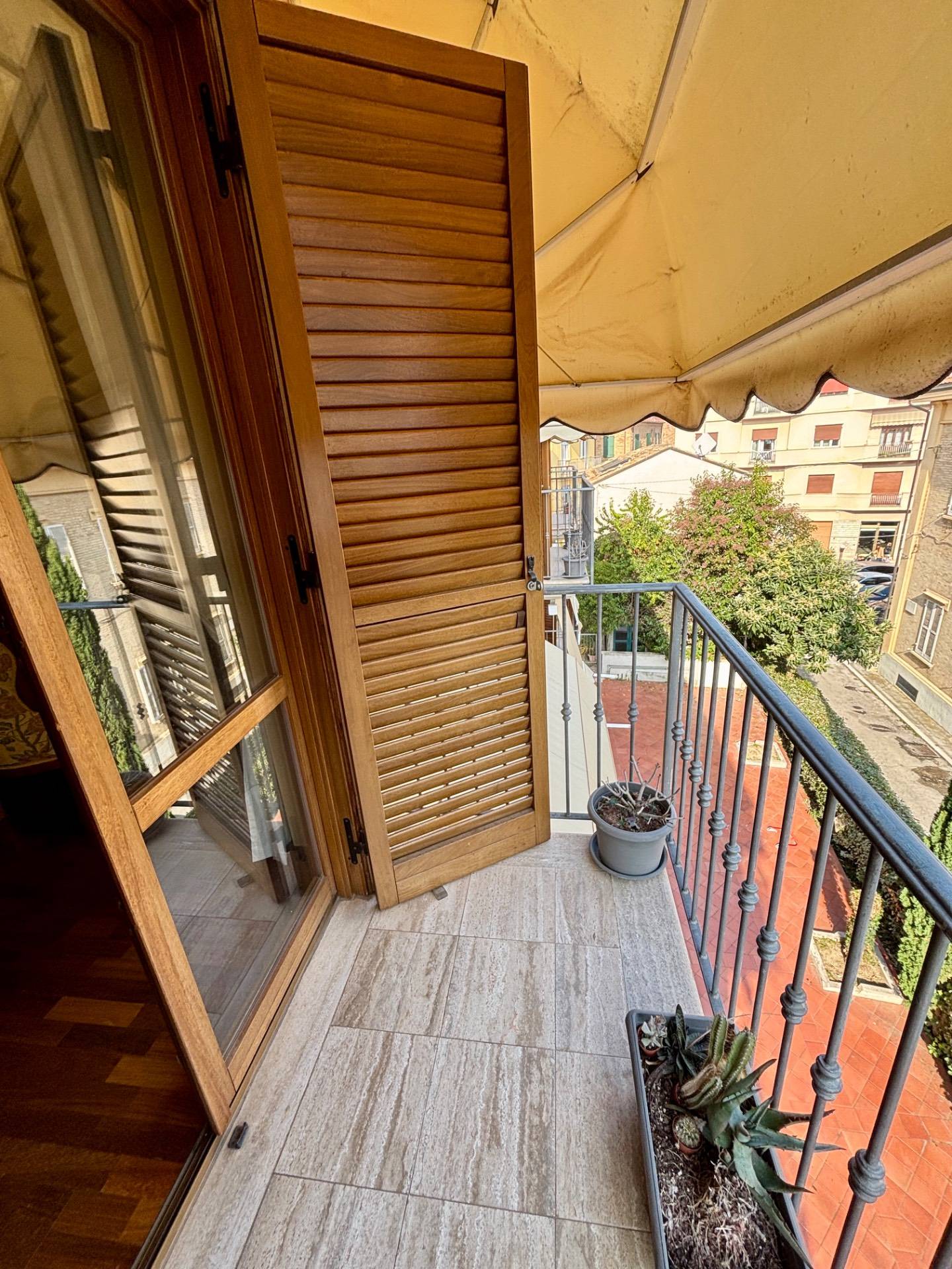Nel cuore di San Benedetto del Tronto, a pochi passi dall'isola pedonale del centro cittadino, appartamento dislocato su due livelli delle dimensioni totali di circa 150 mq, composto di: piano inferiore, dotato di ingresso su di un ampio disimpegno, soggiorno, cucina abitabile, una camera da letto matrimoniale con cabina armadio/spogliatoio, un bagno con finestra e tre balconcini; il piano superiore, accessibile attraverso un elegante scalinata in muratura rivestita in legno, risulta composto di tre stanze, un bagno, due terrazzini vivibili ed un ampio ripostiglio ricavato nella parte bassa del tetto.