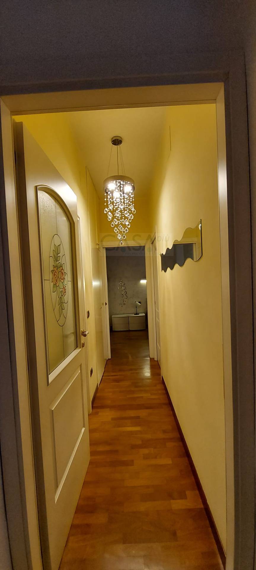 L'appartamento presenta pavimento in travertino nella zona giorno e parquet nella zona notte, infissi in legno con doppio vetro e persiane, videocitofono, aria condizionata, controsoffitto con faretti, porte a scrigno e portoncino blindato.